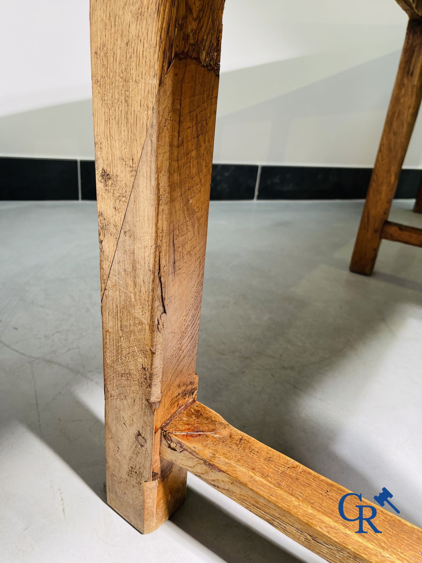 | Large table in oak with 2 drawers. 18th century. old restorations. |