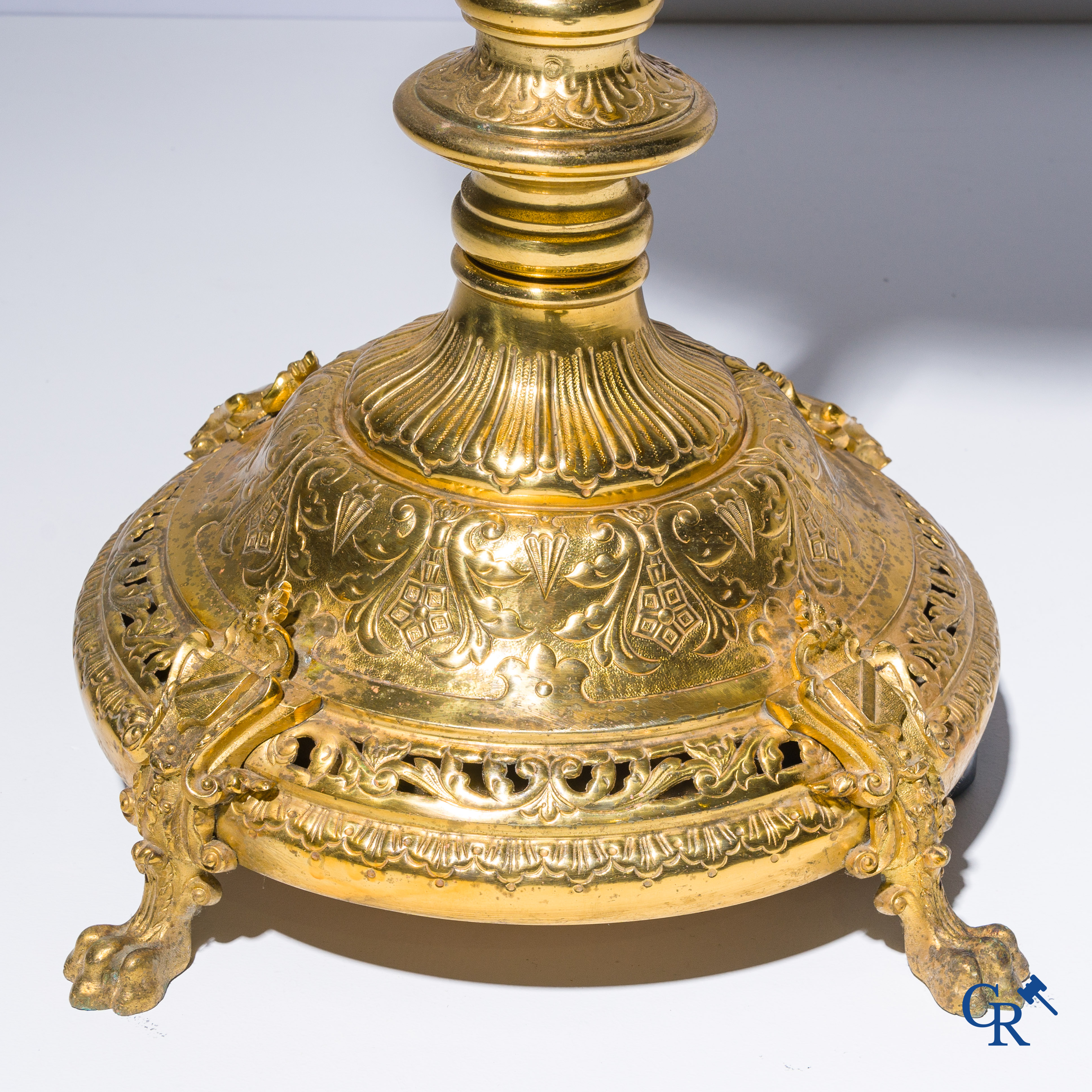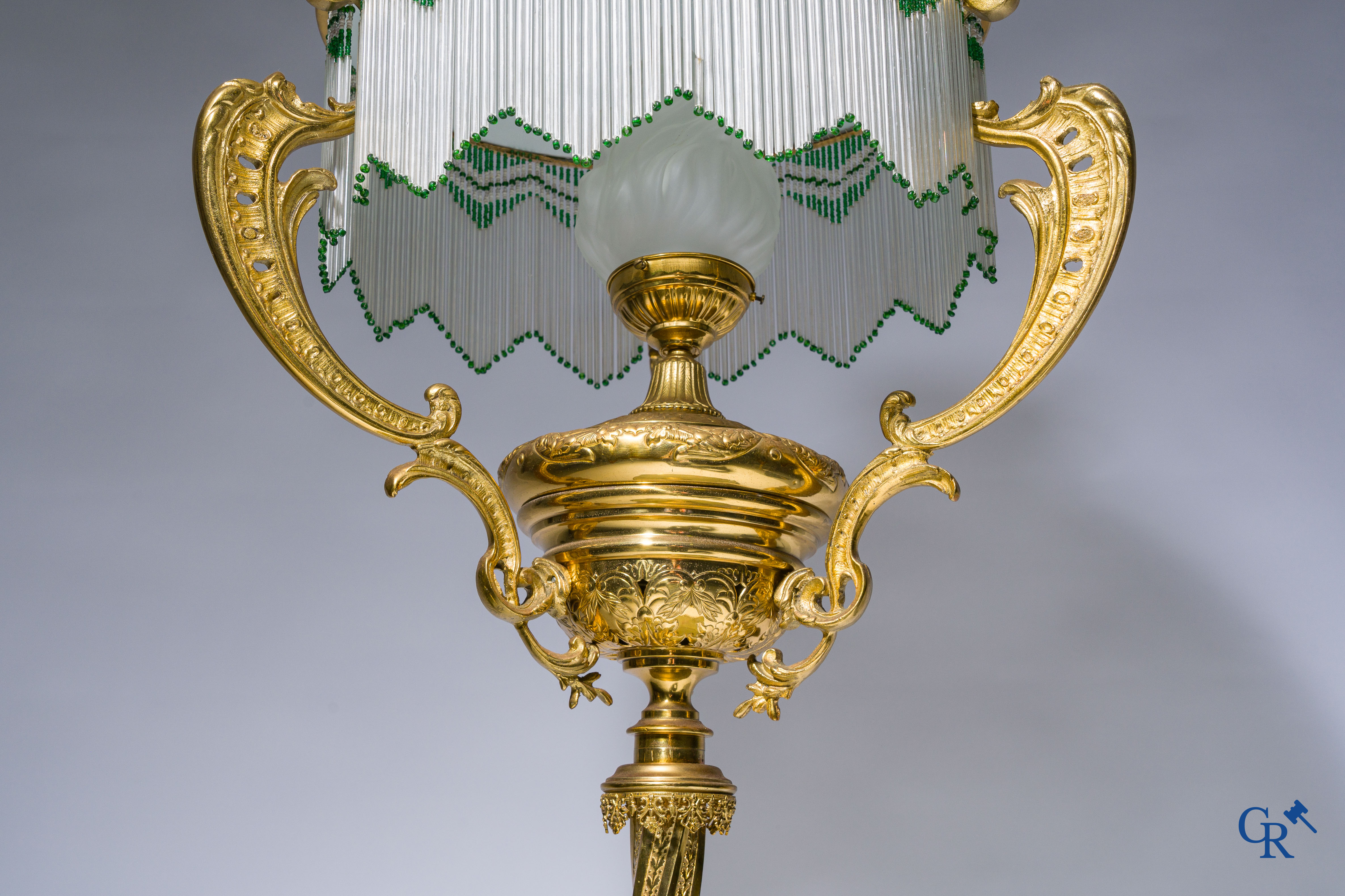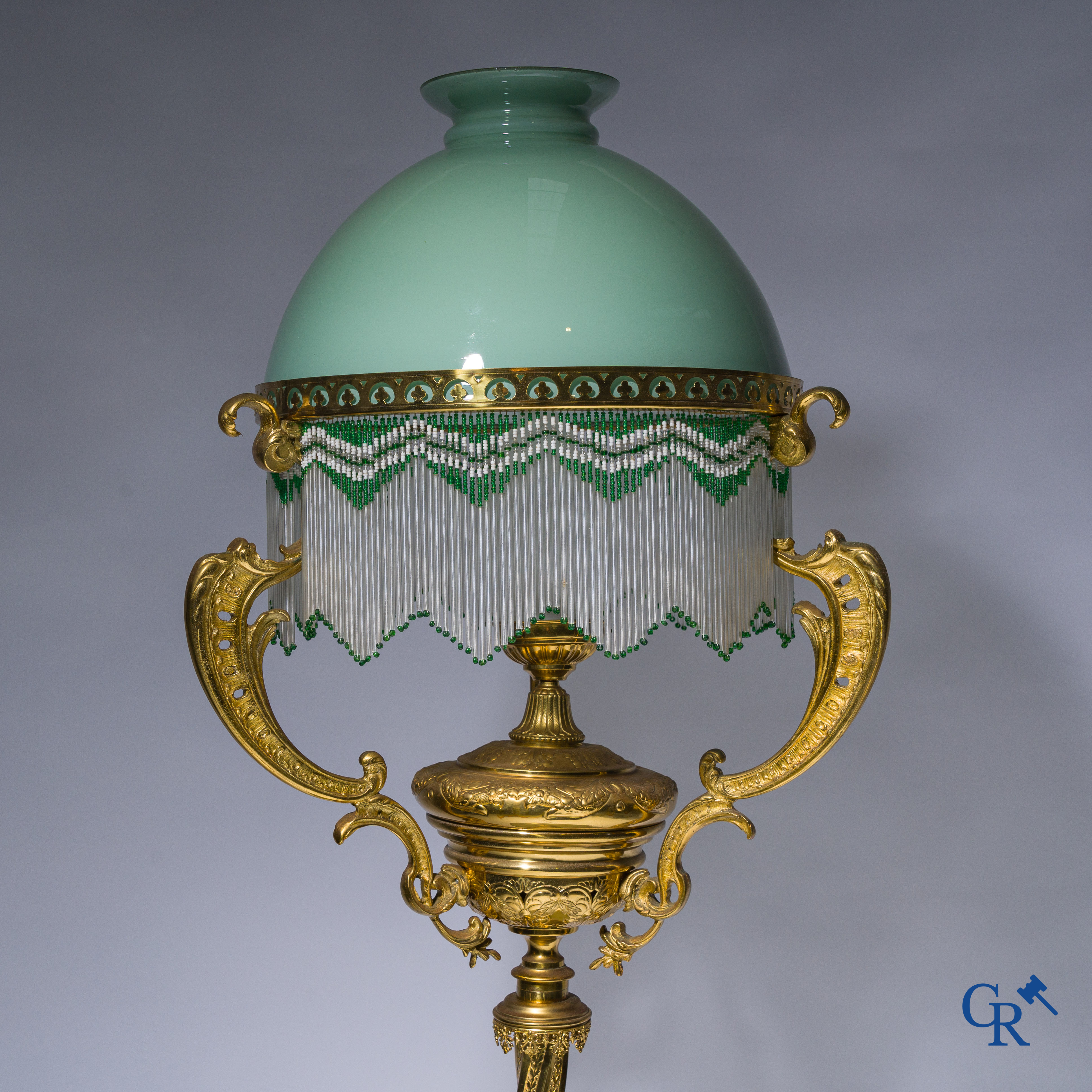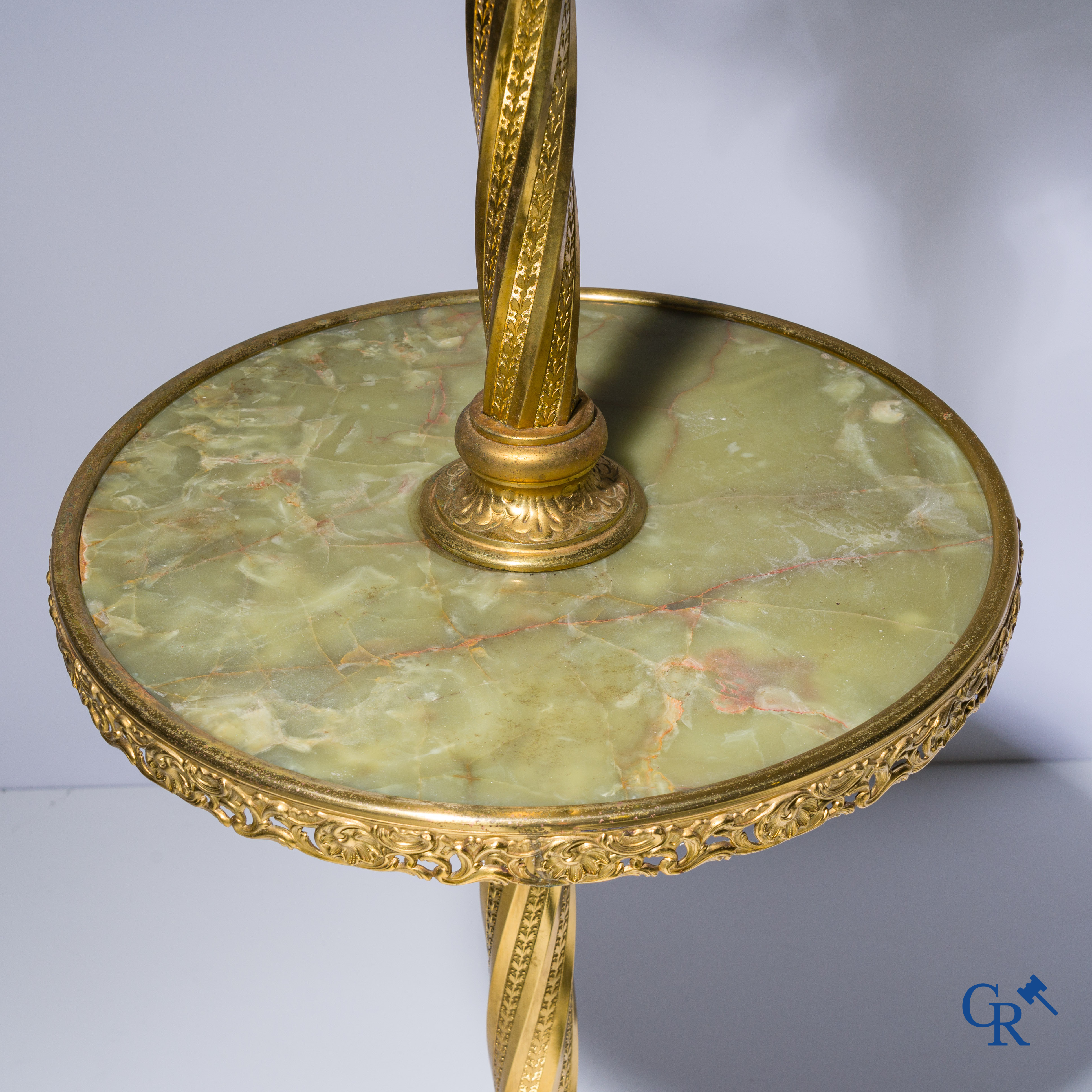 | A floor lamp in bronze, onyx and opaline. Around 1900. |