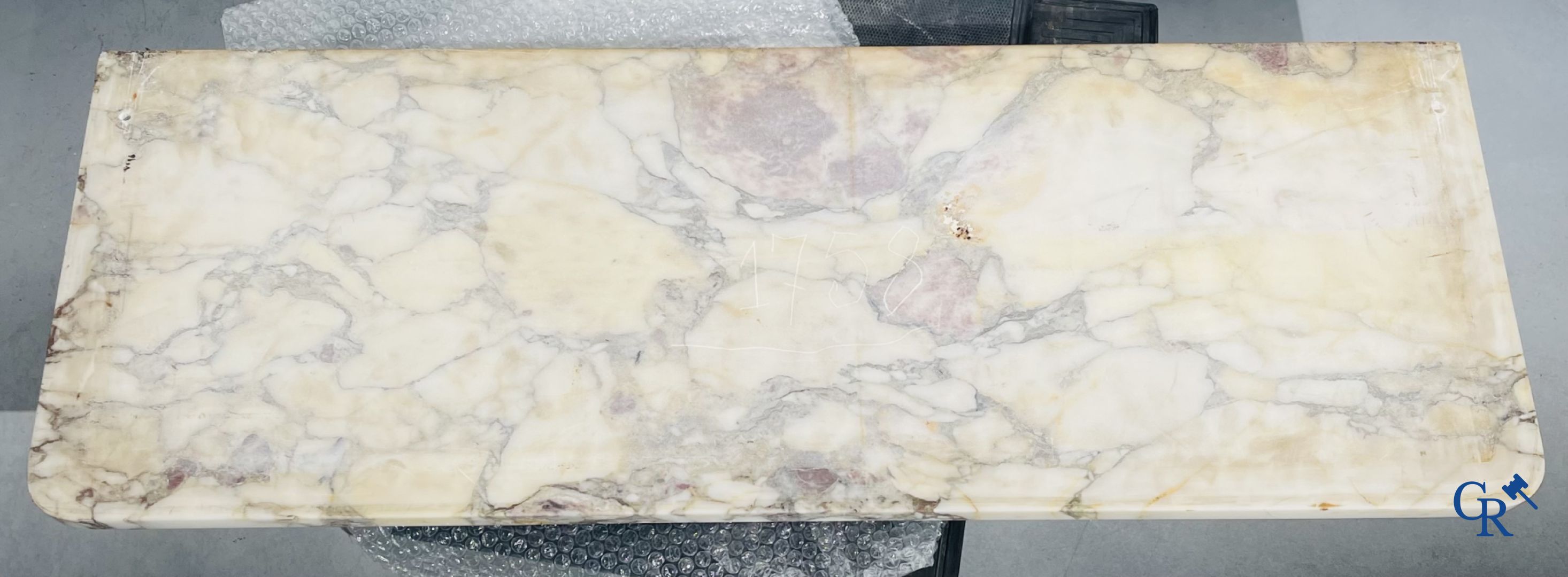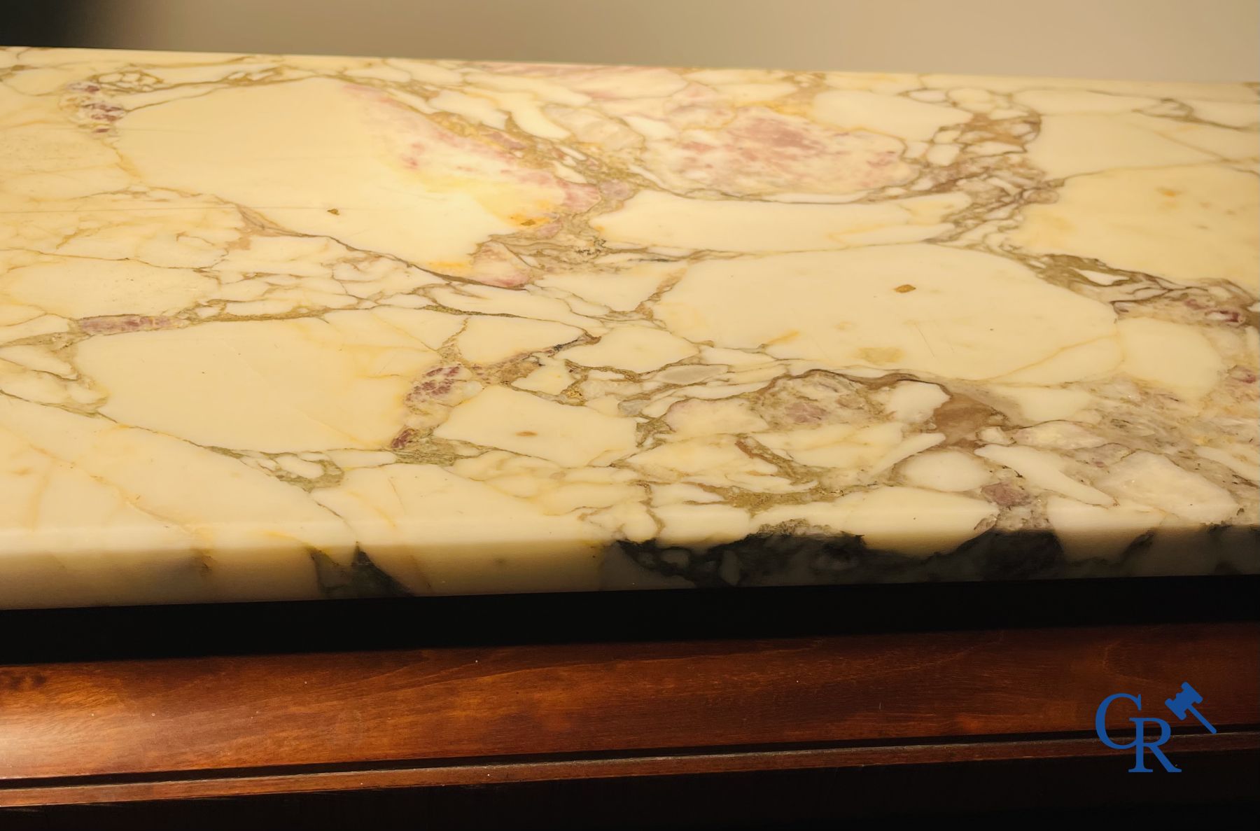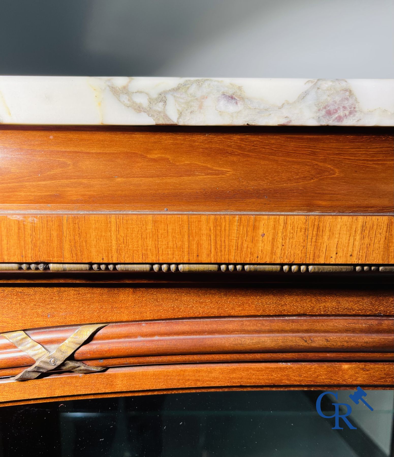 | Display cabinet in LXVI style with bronze fittings. period 1900-1920 Mahogany and rosewood veneer, violet breccia marble. Signed in lock Duvivier Paris 78 FG. St Antoine. |
