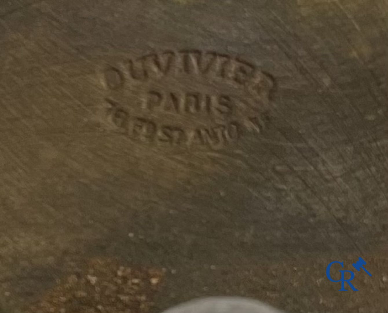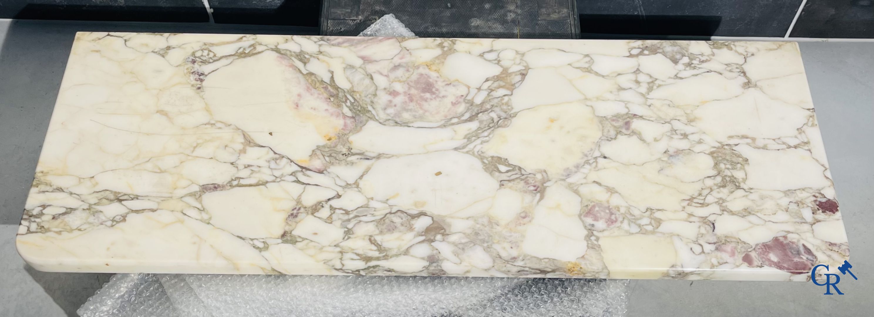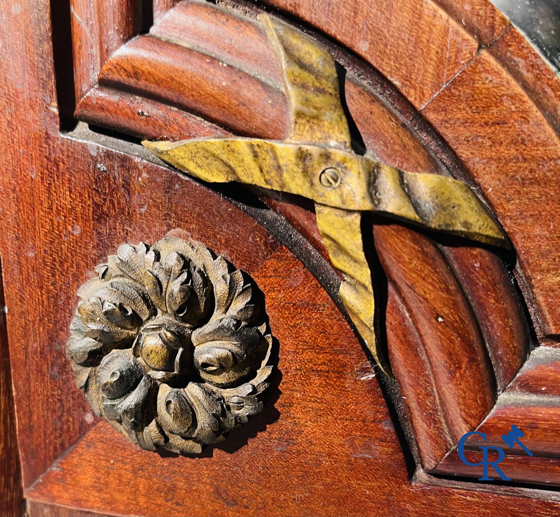 | Display cabinet in LXVI style with bronze fittings. period 1900-1920 Mahogany and rosewood veneer, violet breccia marble. Signed in lock Duvivier Paris 78 FG. St Antoine. |