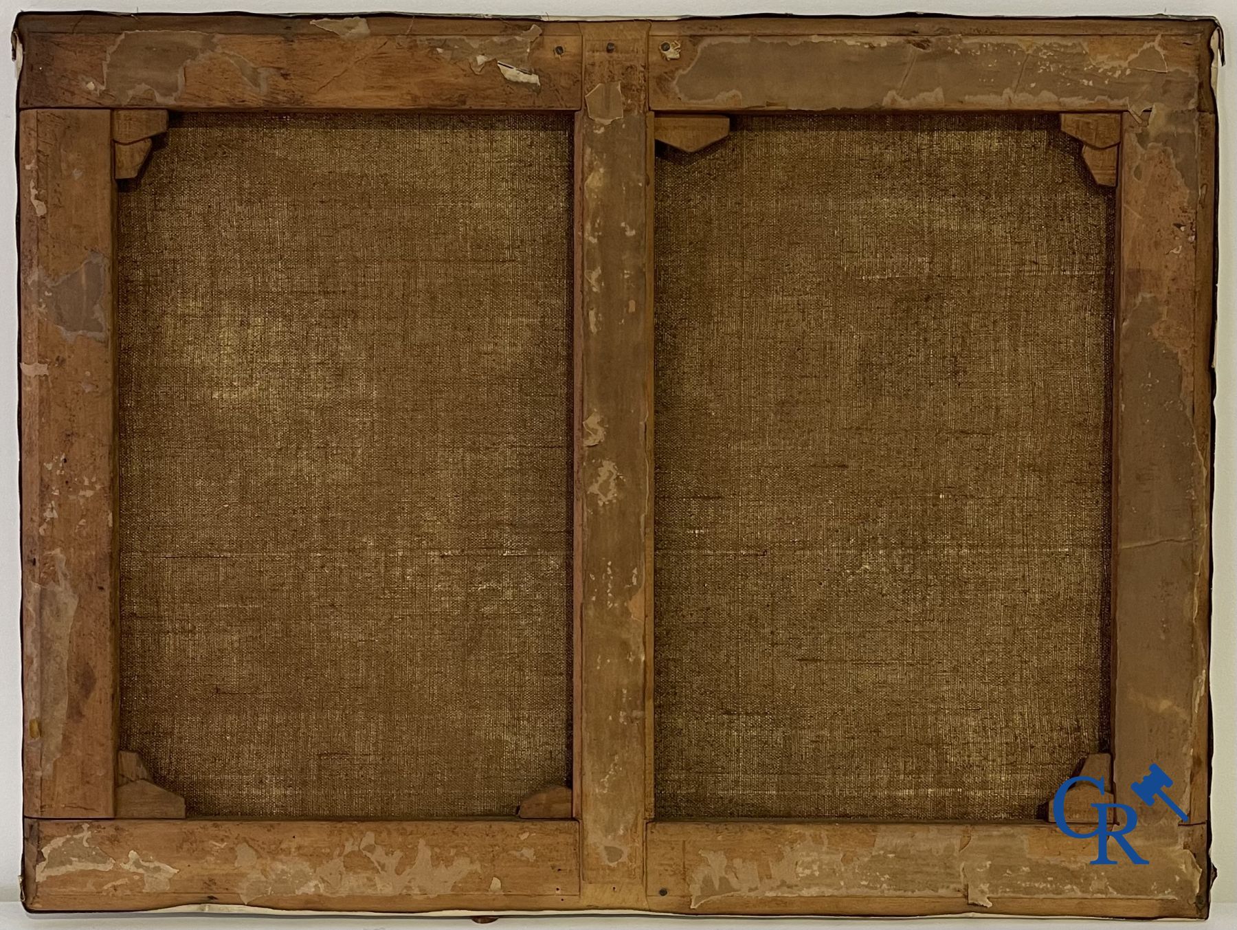 | Painting: Frans Keelhoff (1820-1891) Oil on canvas. Shepherdess and her flock in the yard. Signed and dated 1864 bottom left. |