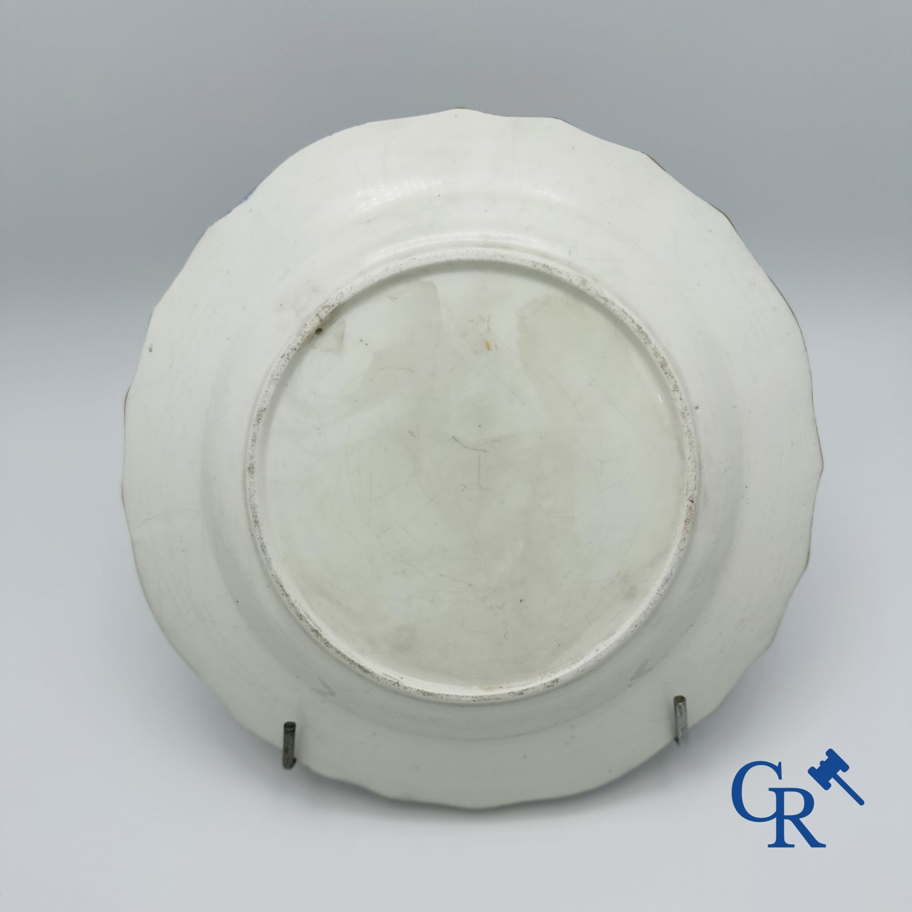 | Plate in blue tinted Doorniks Porcelain with representation of the belfry of Bergues. (Northern France) Marked with a gilded tower. 2nd Period 1763-1774. |