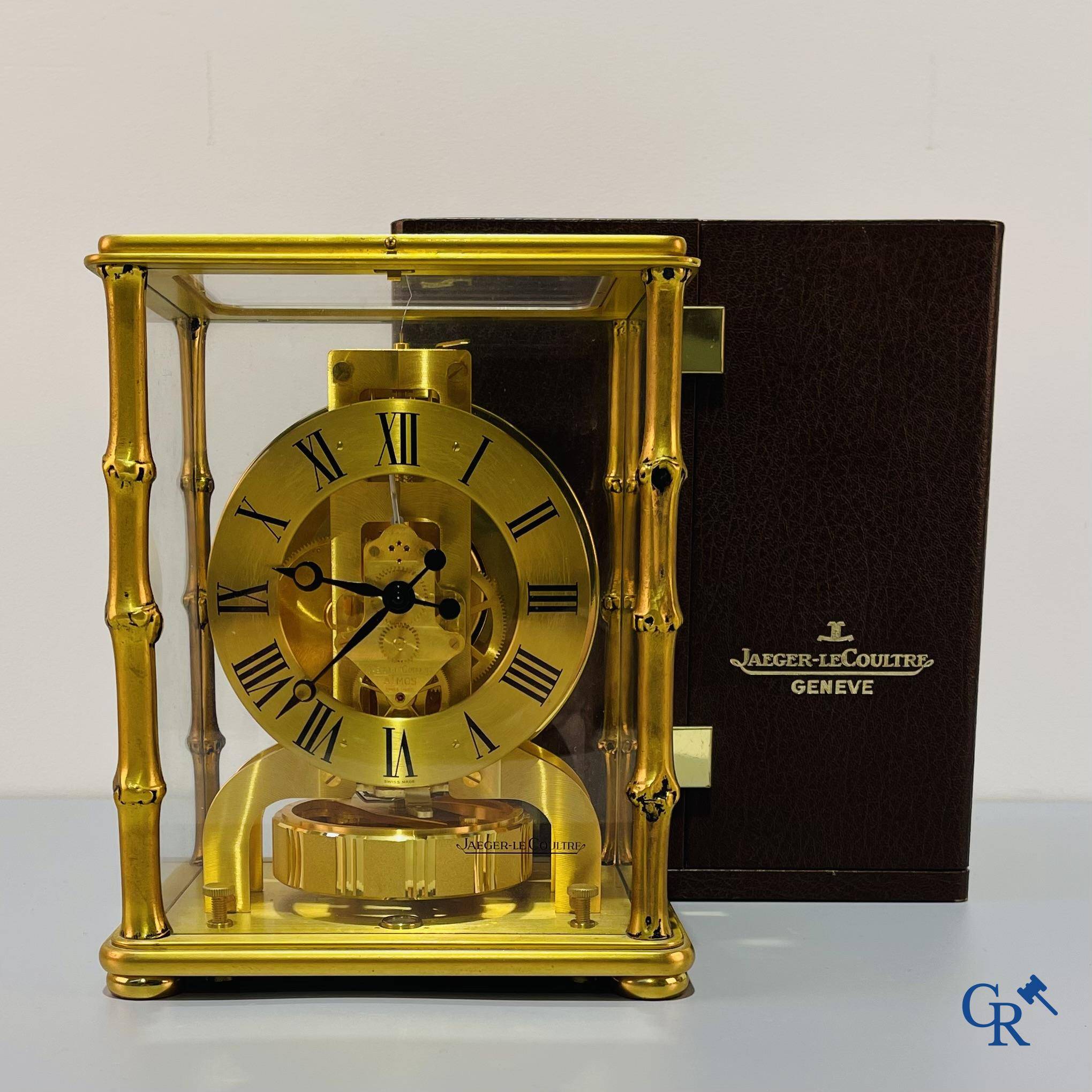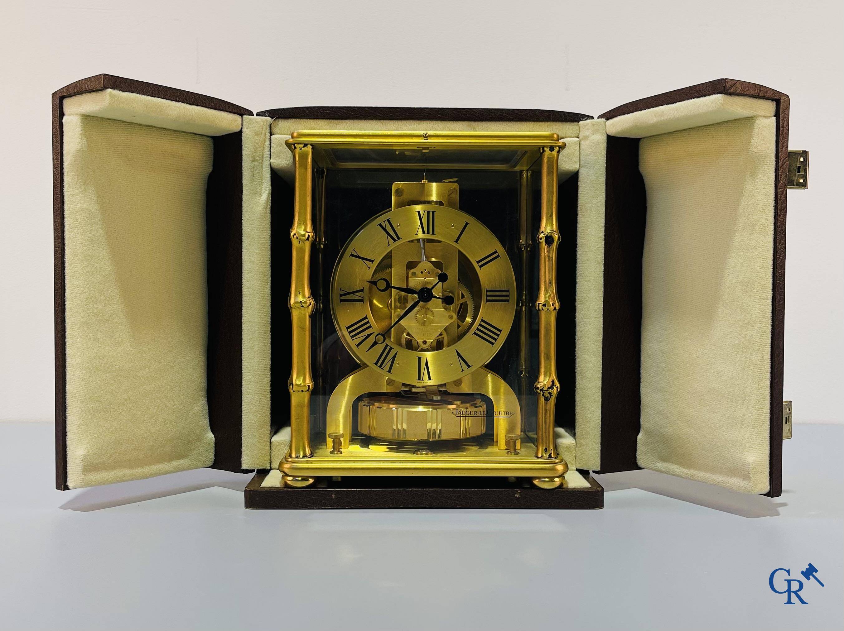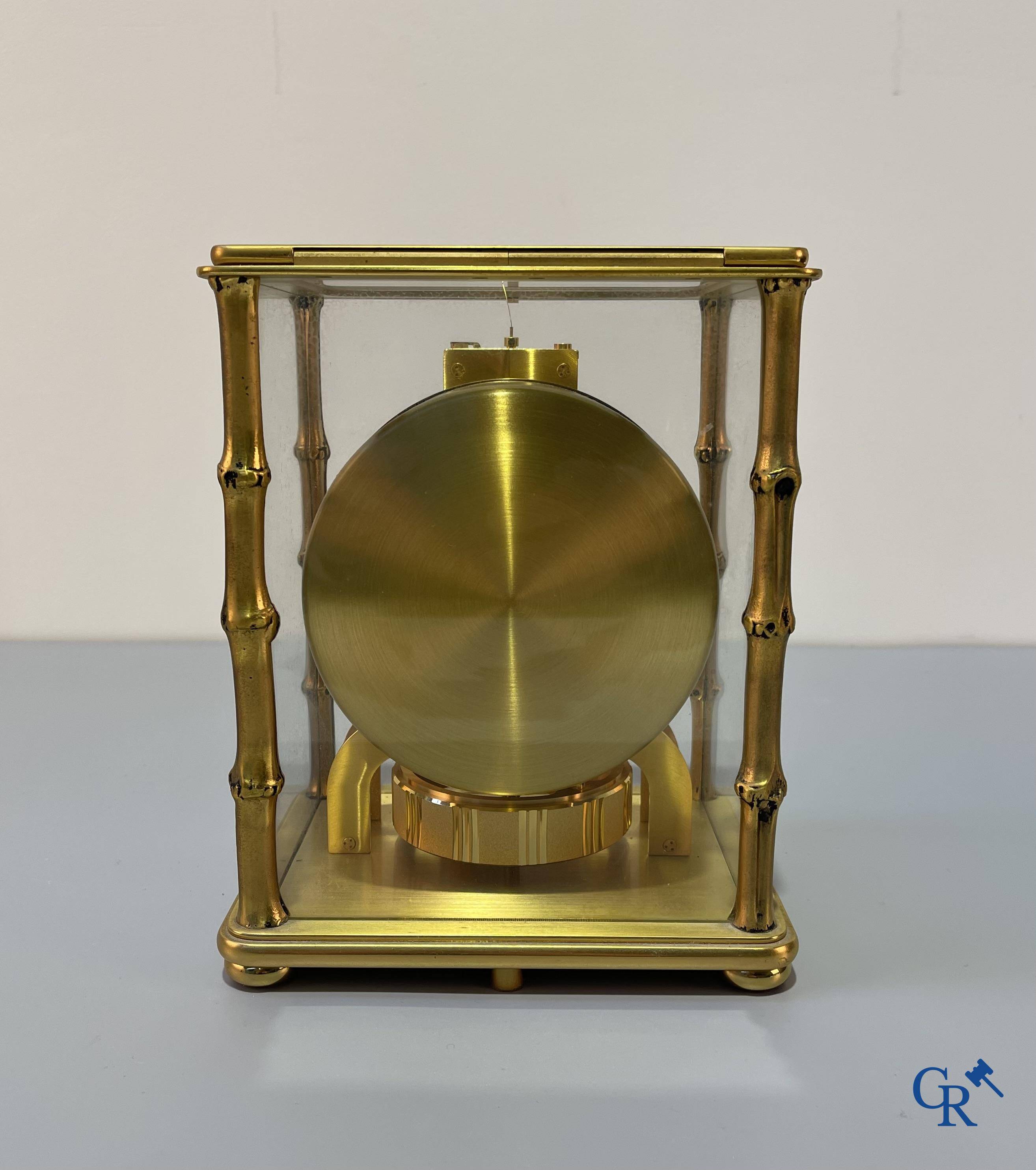 Jaeger LeCoultre, Pendule Atmos avec cadran doré et finition en bambou dans sa boîte d'origine, vers 1980.