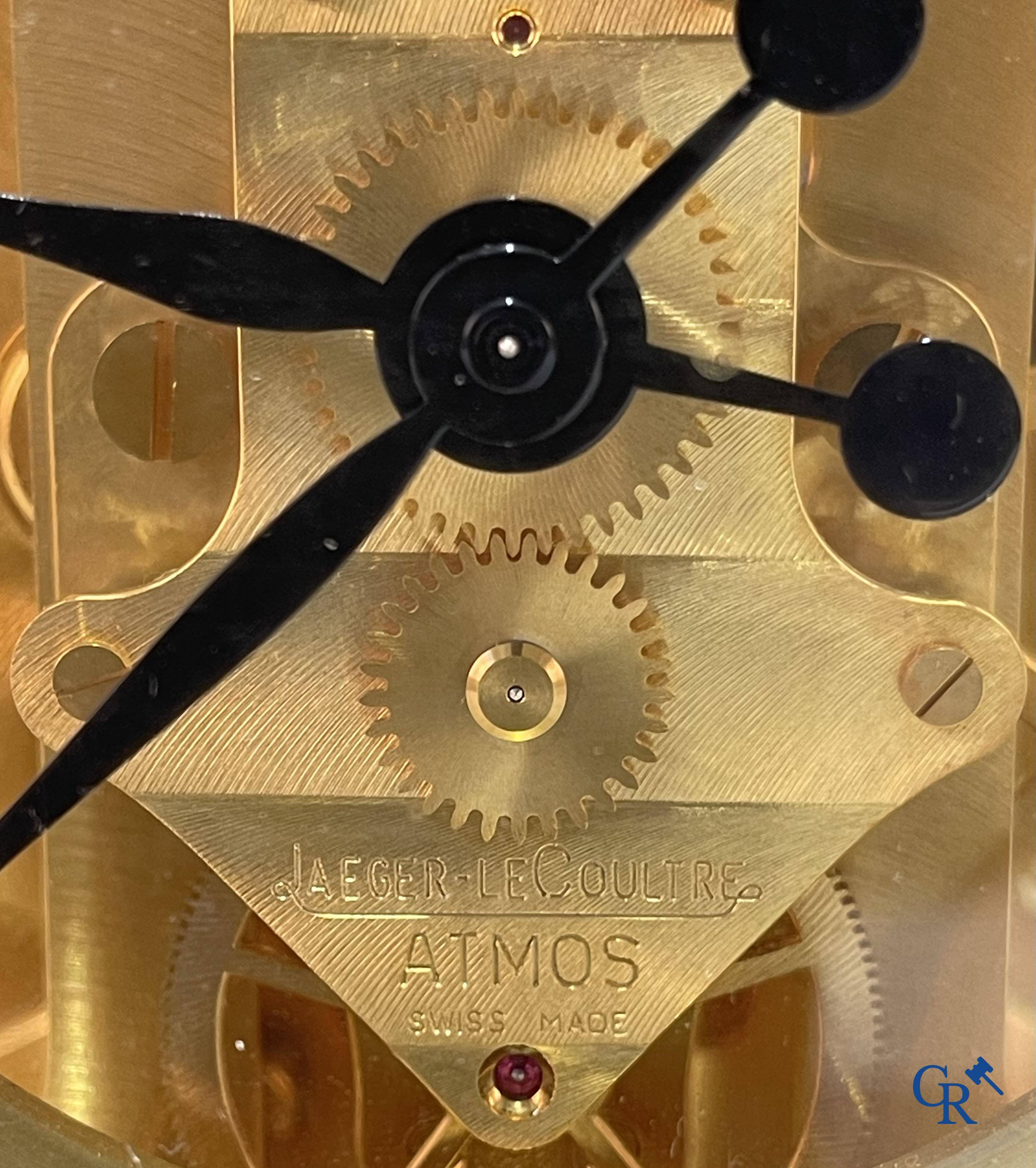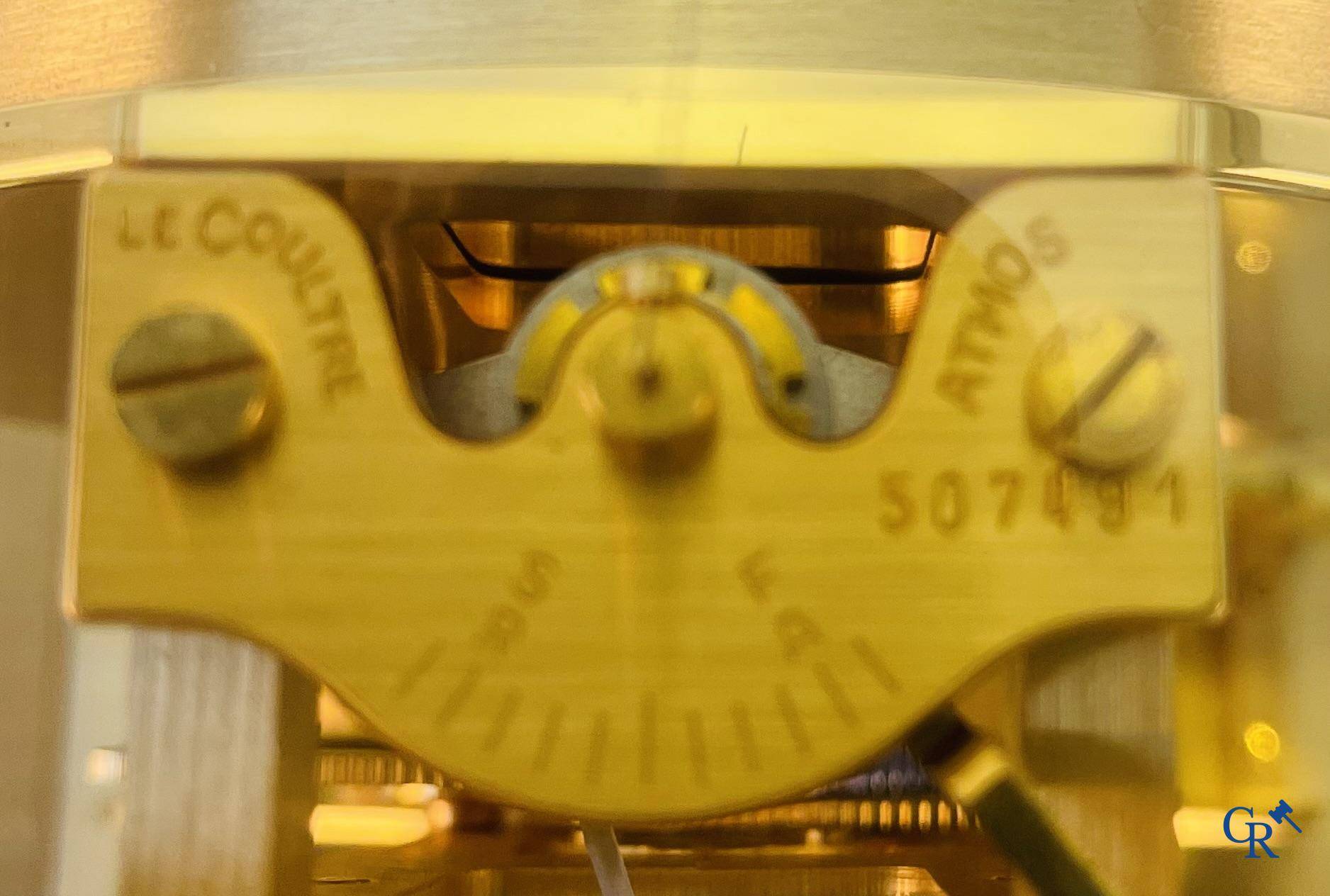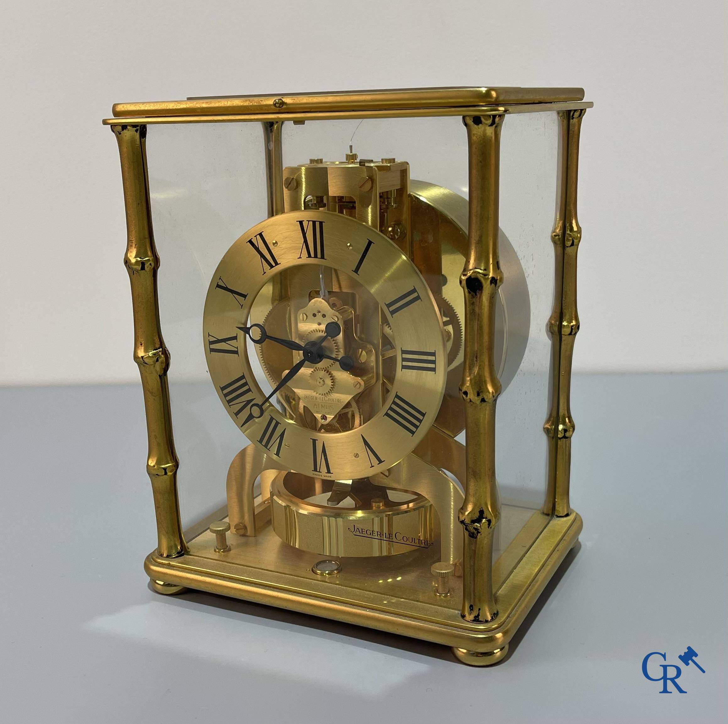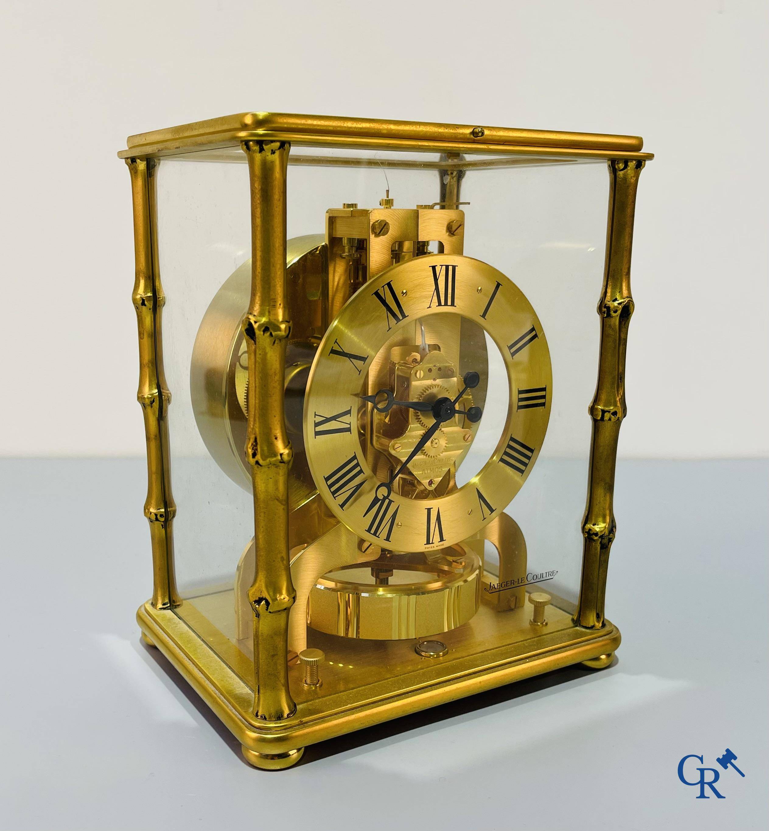 Jaeger LeCoultre, Pendule Atmos avec cadran doré et finition en bambou dans sa boîte d'origine, vers 1980.