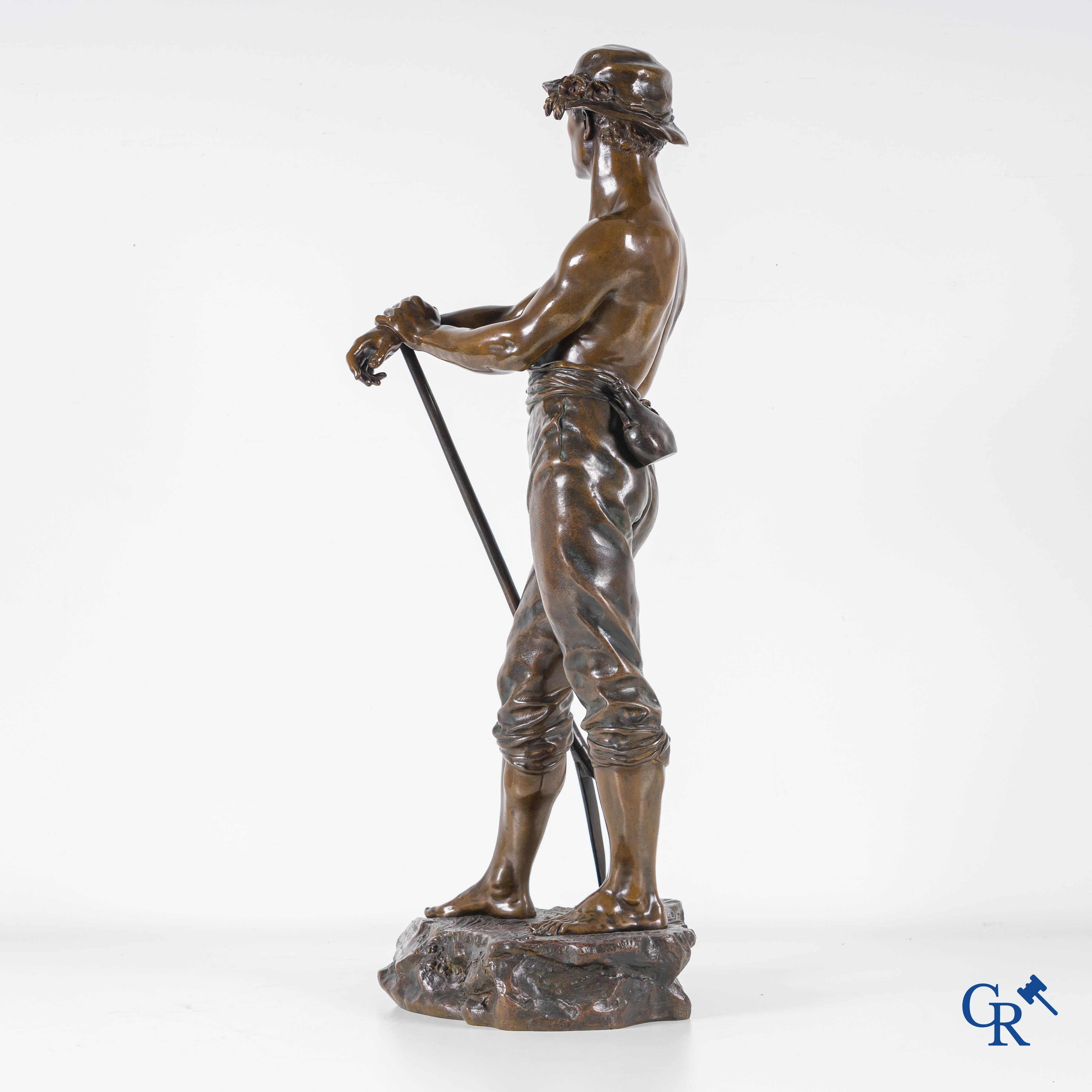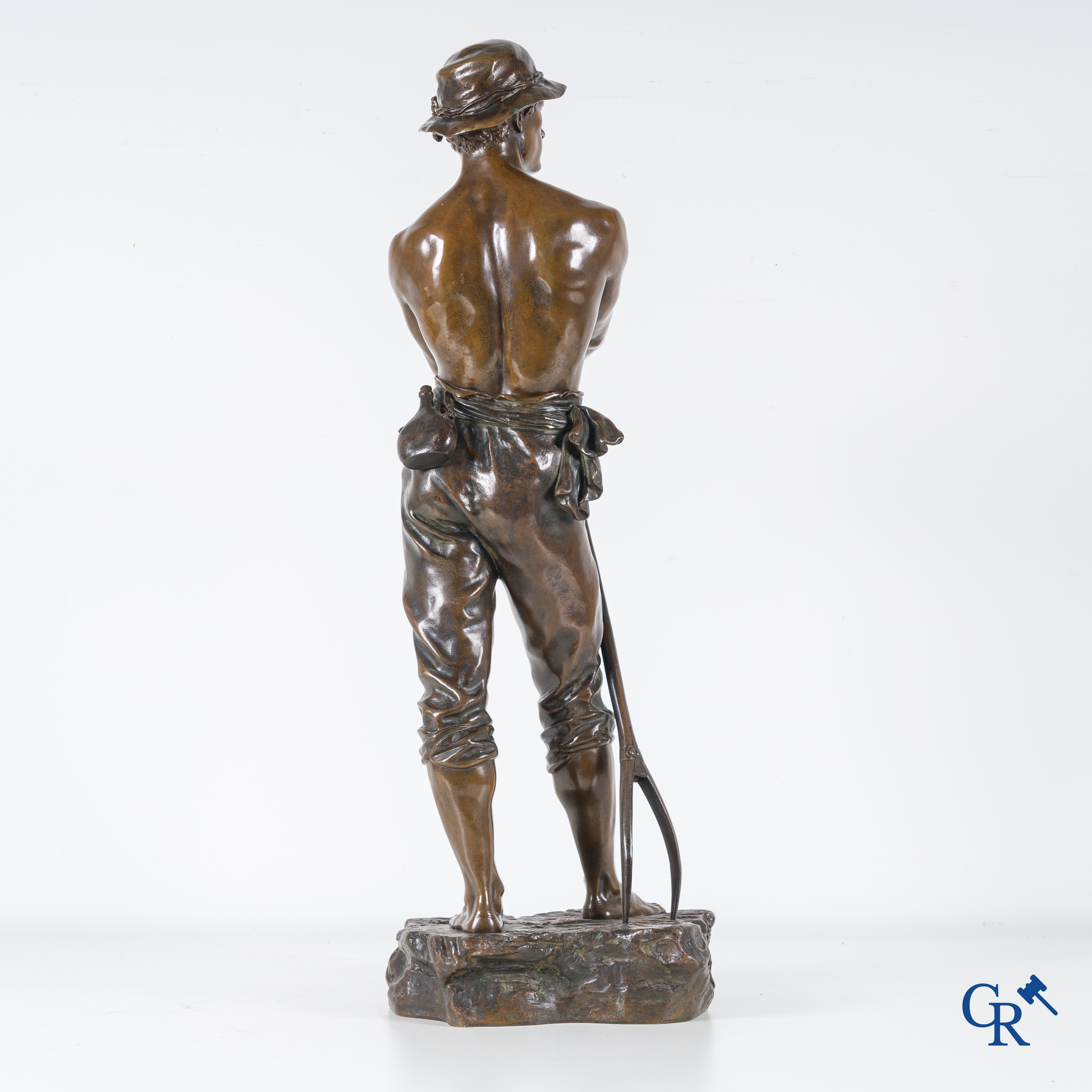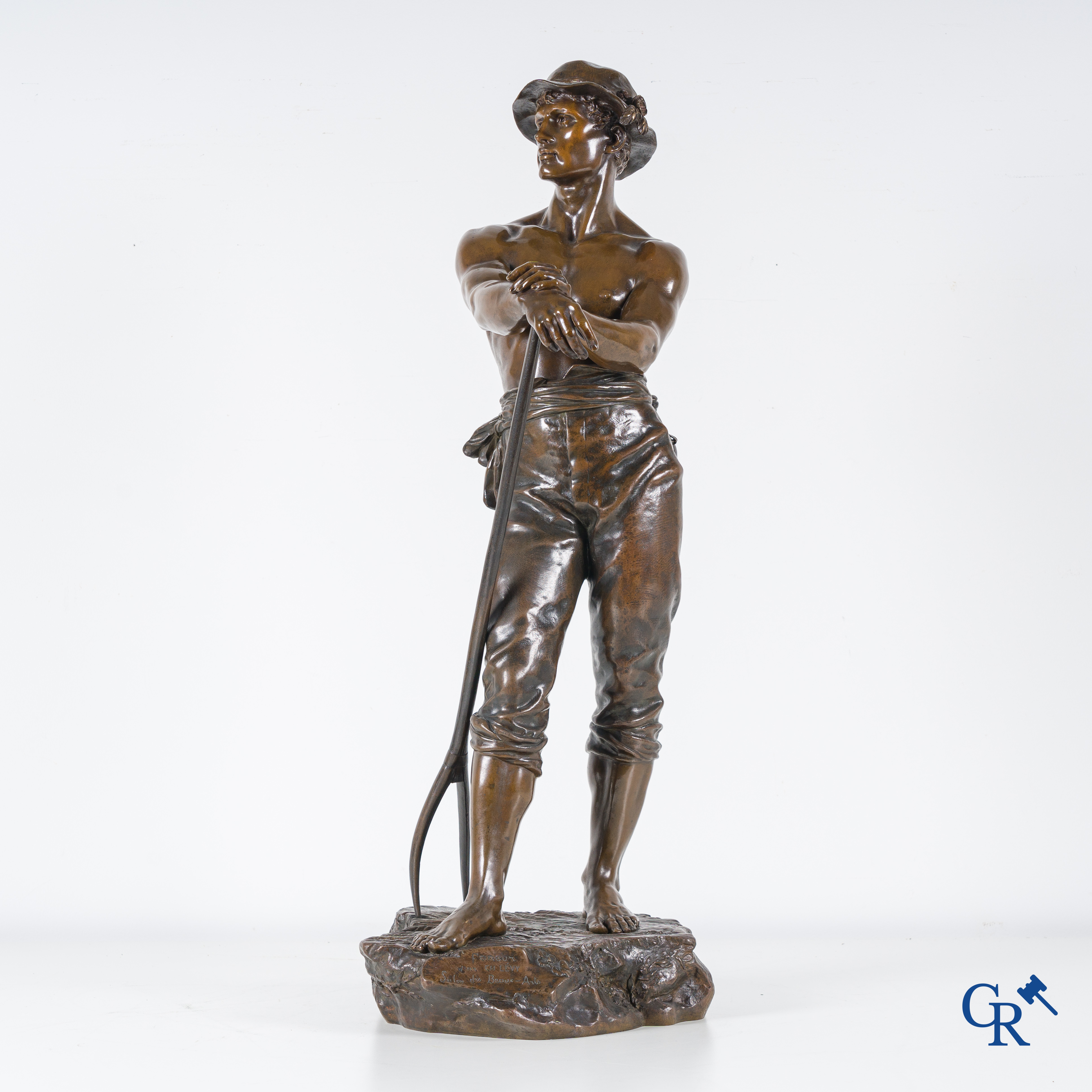 | Charles Octave Levy (1840-1899) Faneur, Salon des Beaux-Arts. Statue en bronze avec patine brune. 19ème siècle. Cachet de fonderie L.V deposée. n°6596 s. |