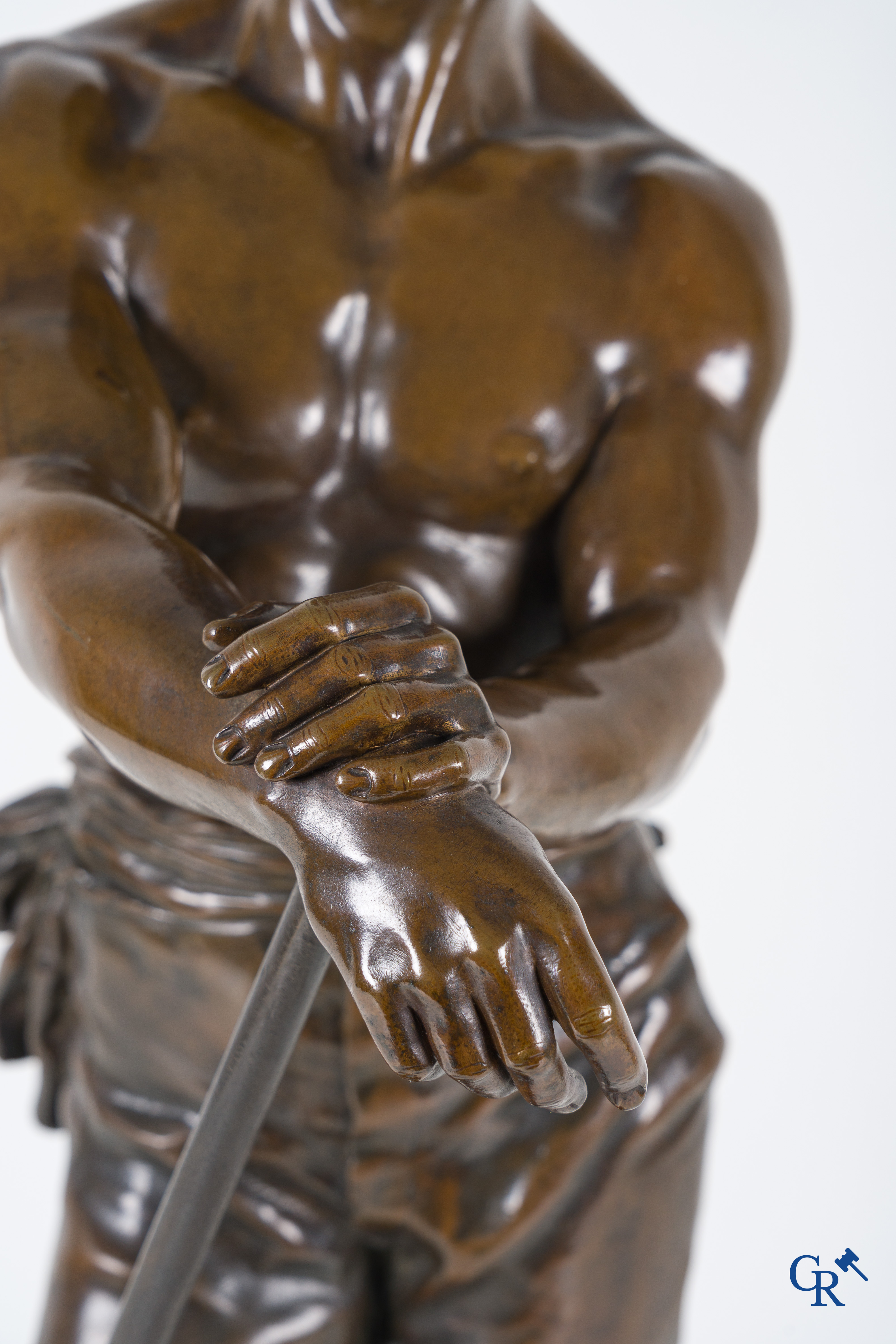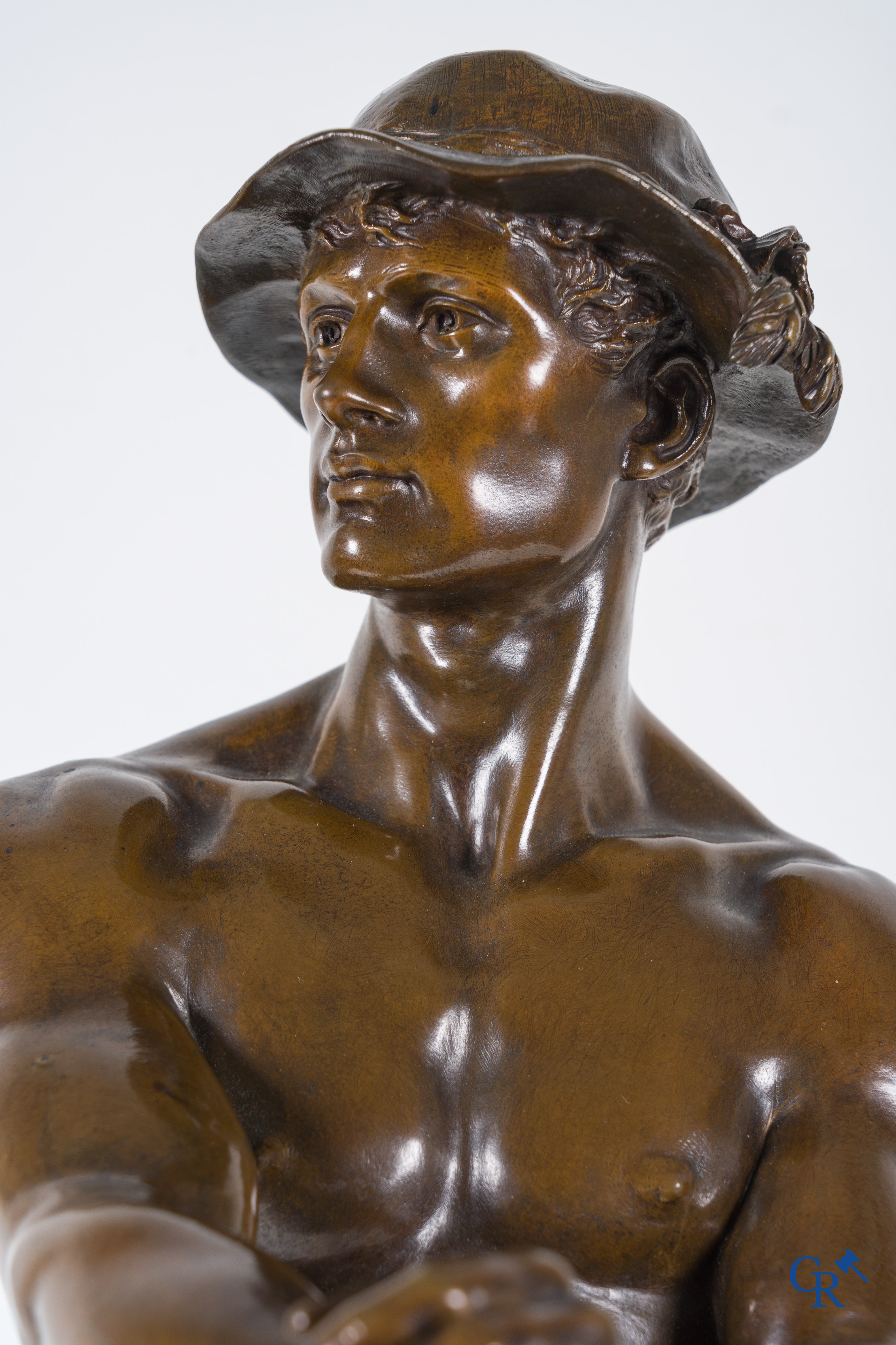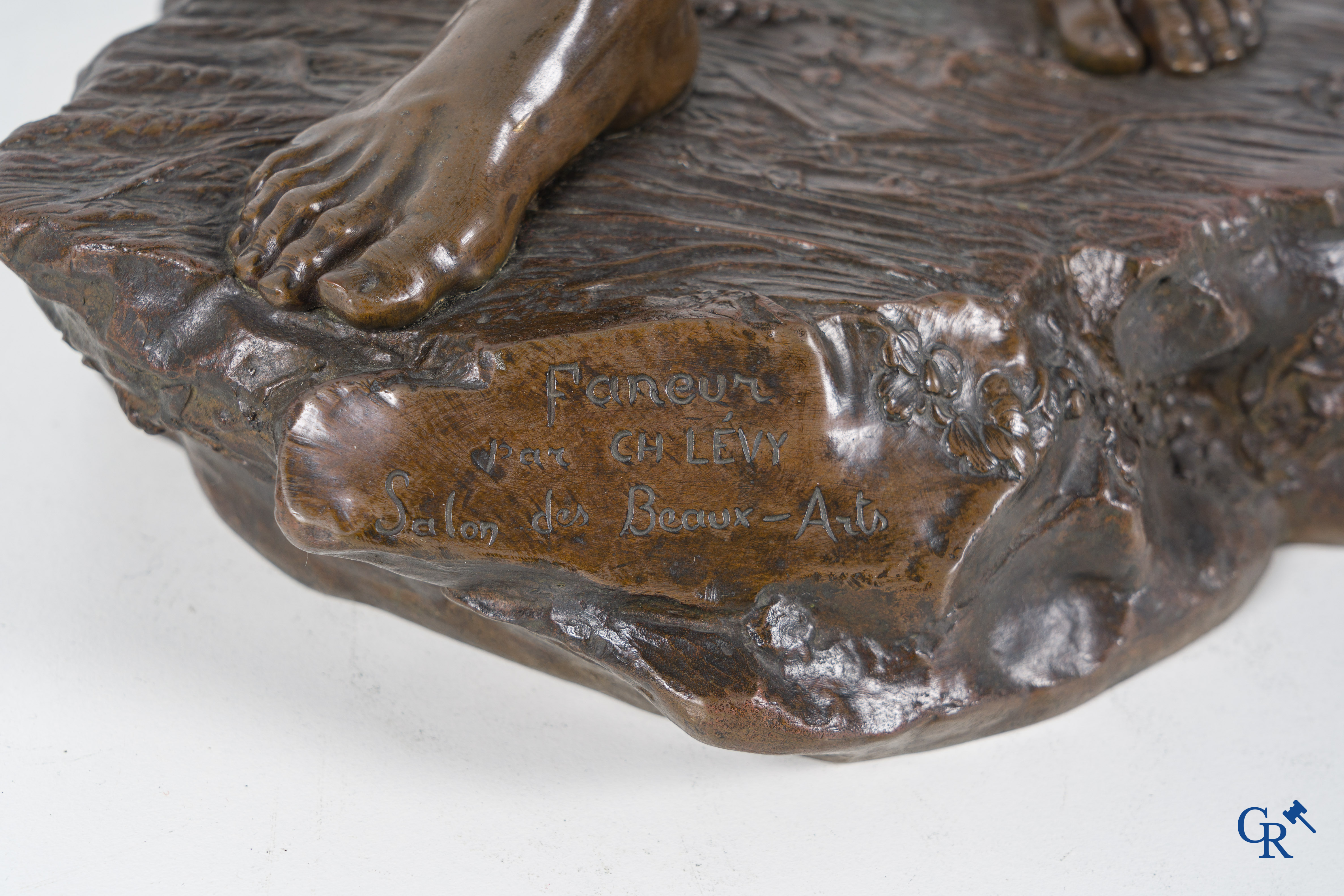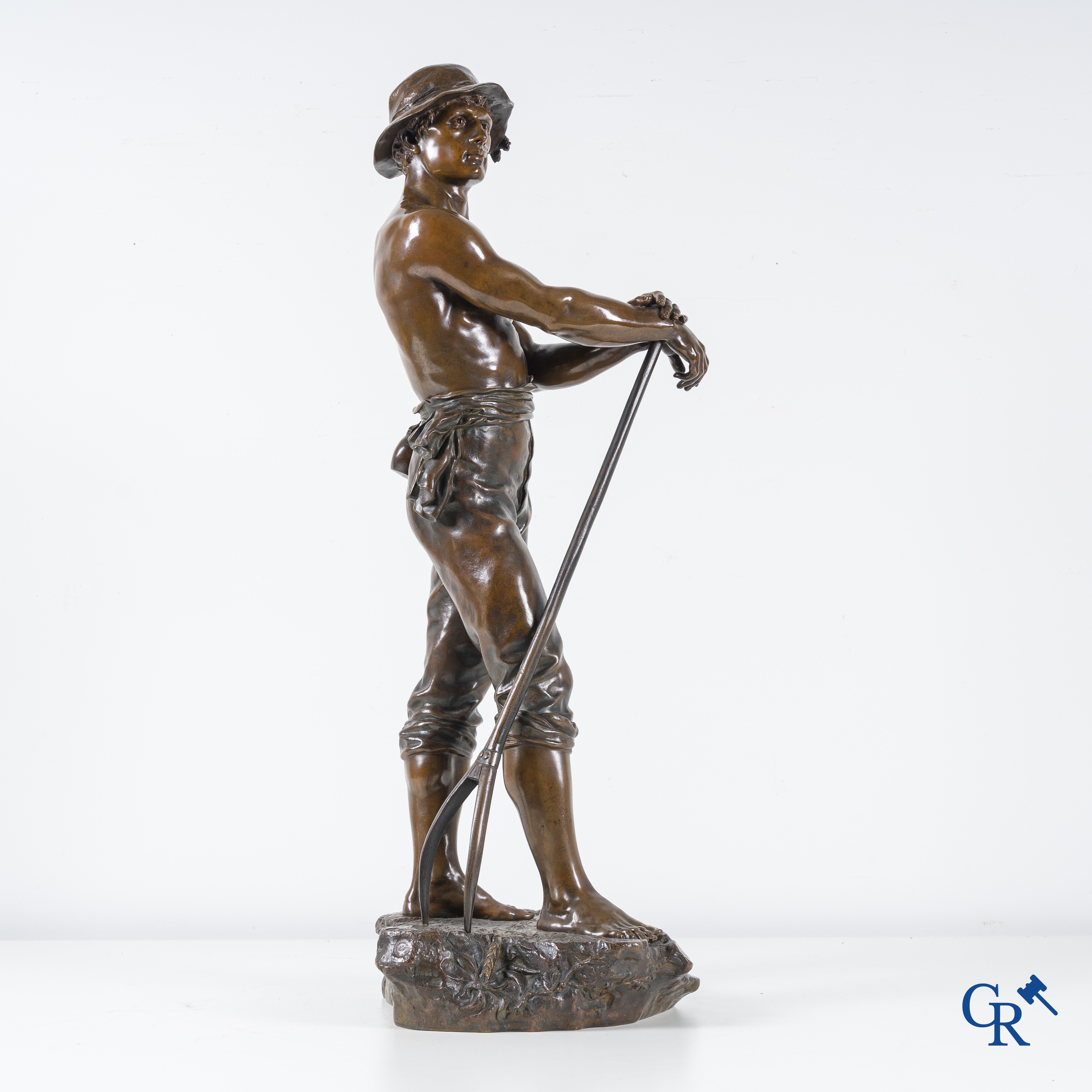 | Charles Octave Levy (1840-1899) Faneur, Salon des Beaux-Arts. Statue en bronze avec patine brune. 19ème siècle. Cachet de fonderie L.V deposée. n°6596 s. |