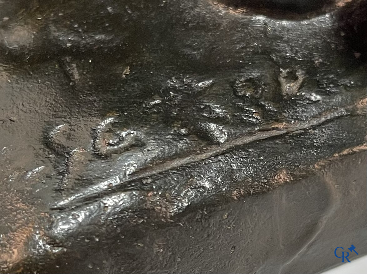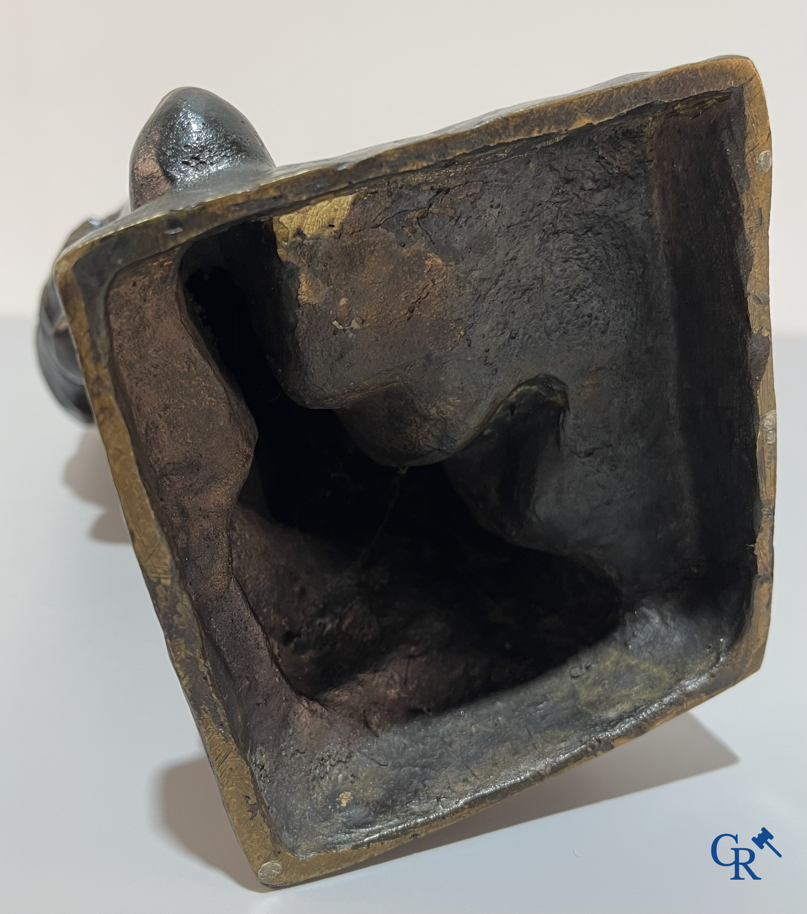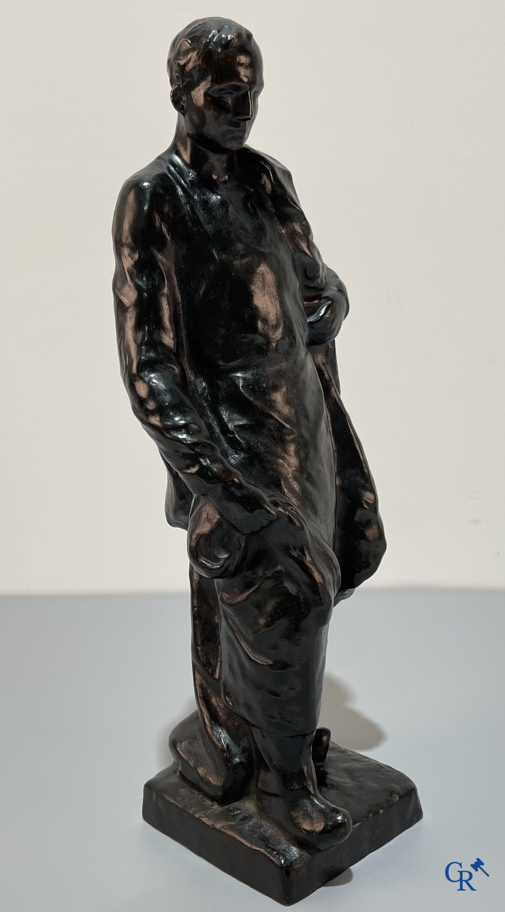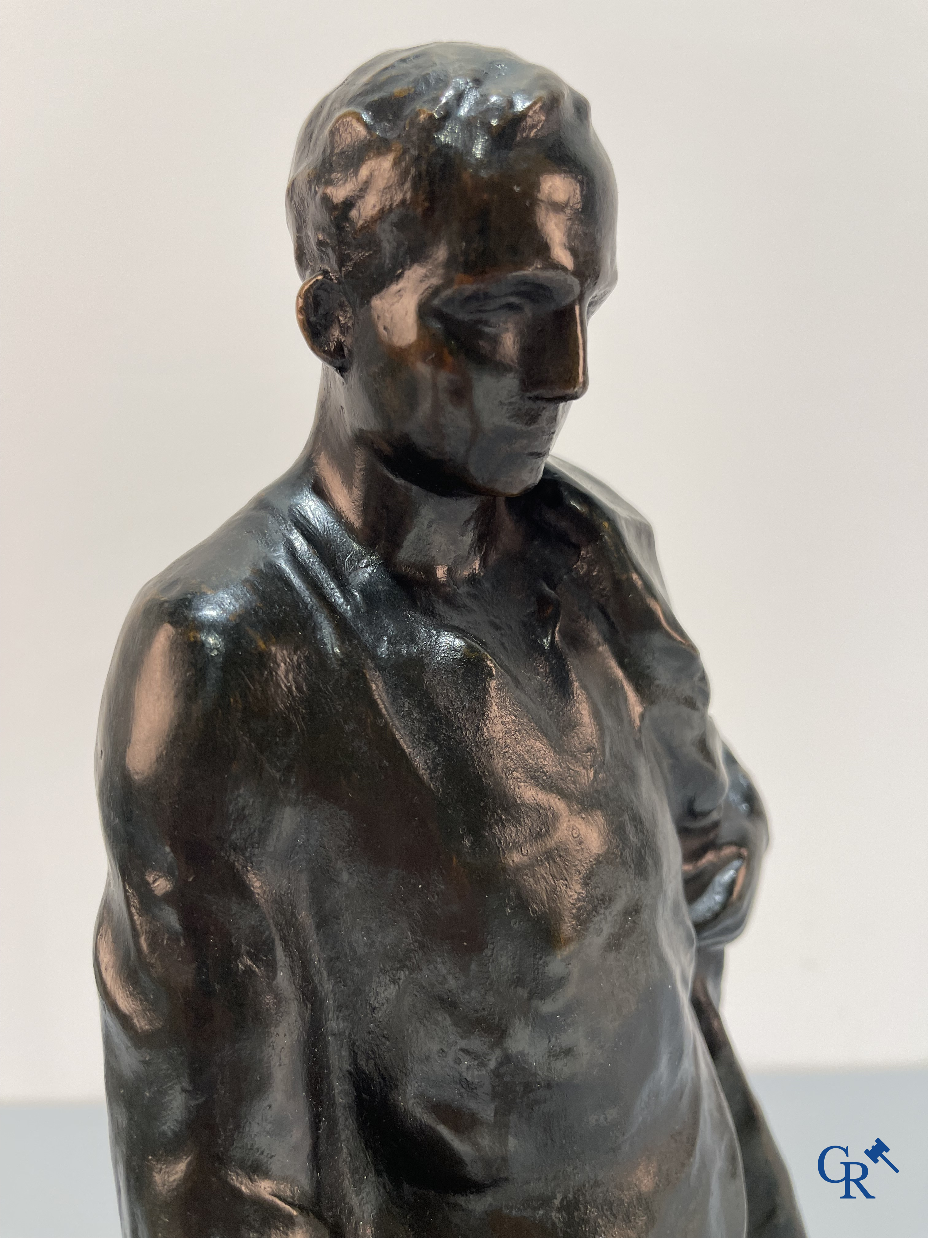 | Leon Sarteel (1882-1942) "L'homme de peine" Statue en bronze à la patine foncée. Signé L Sarteel. |