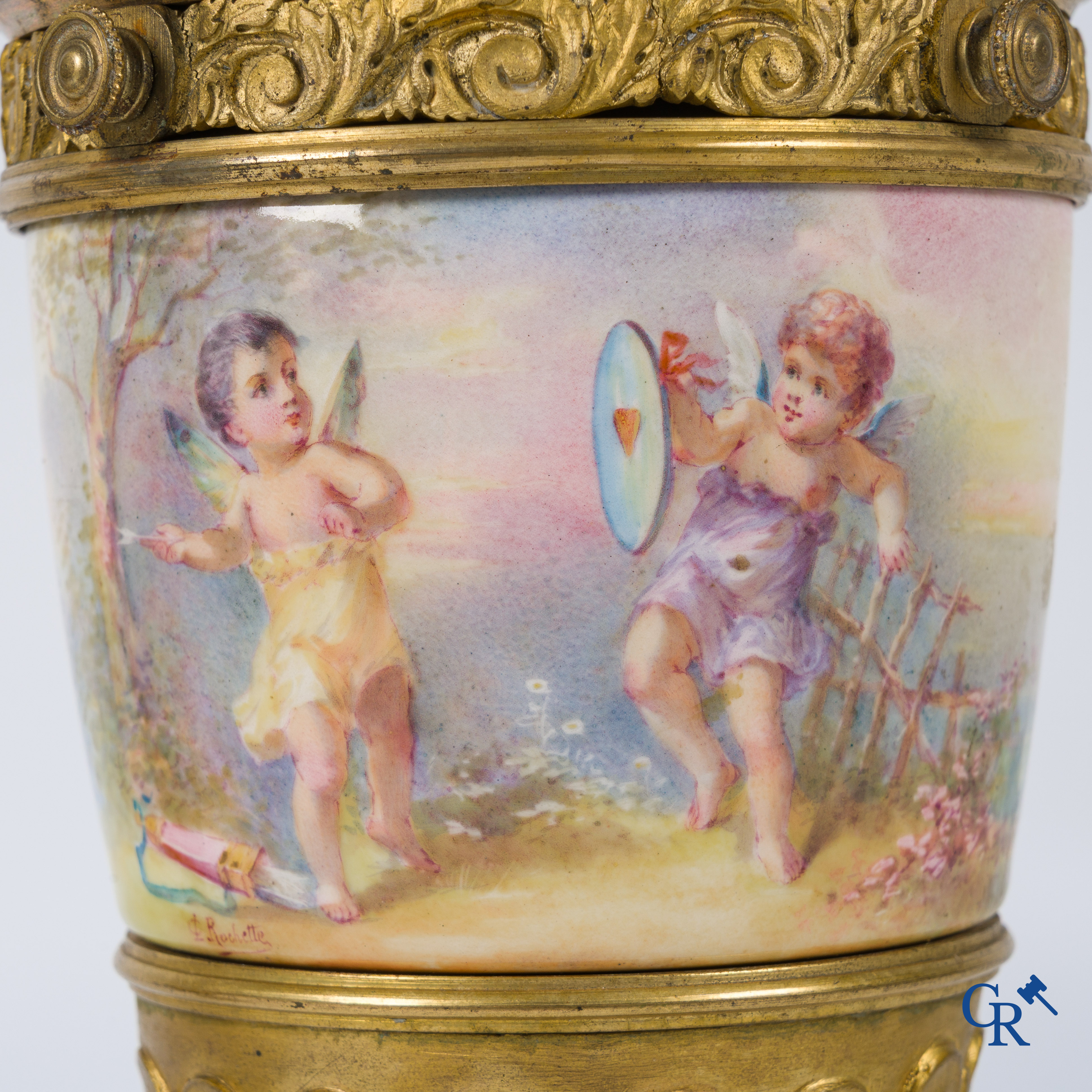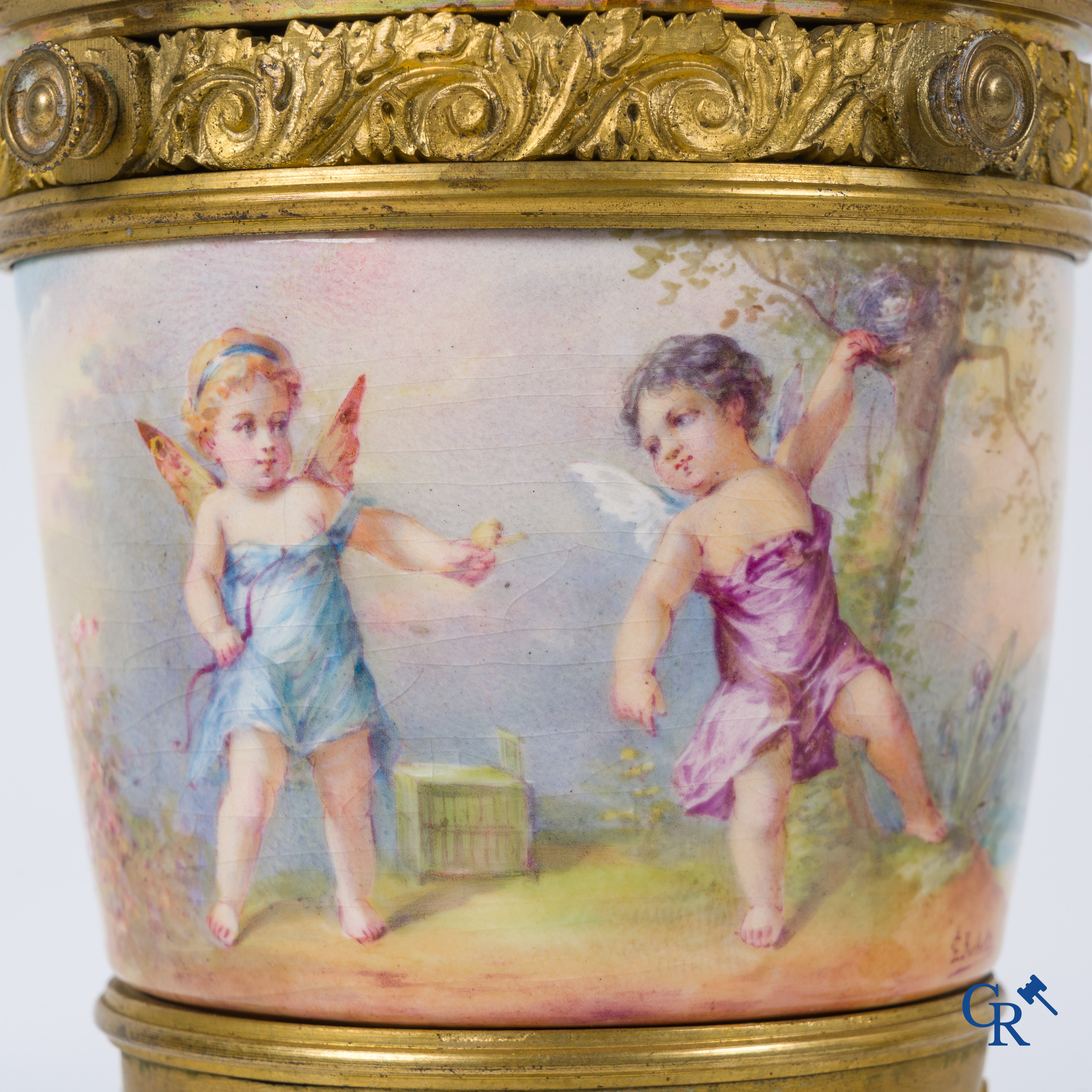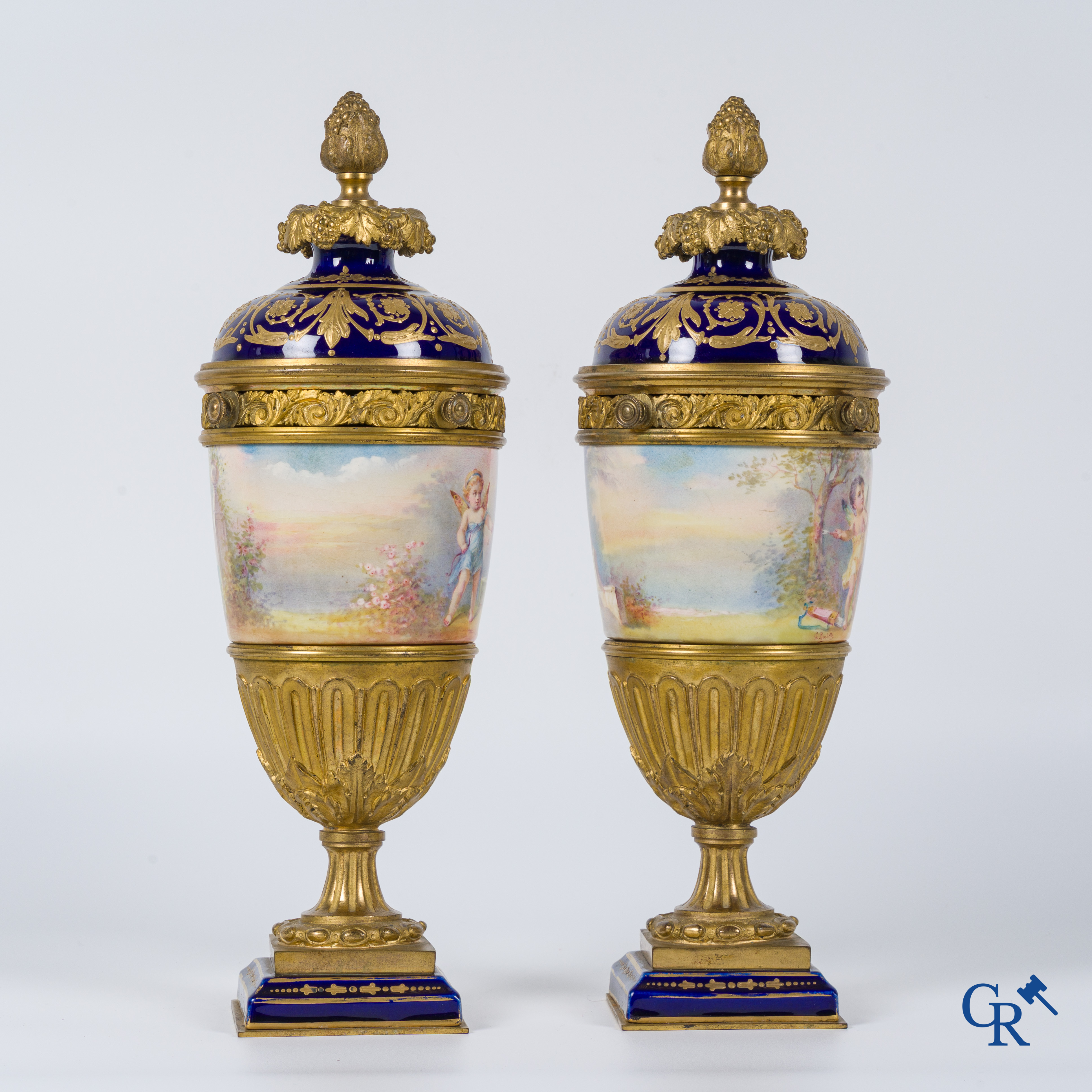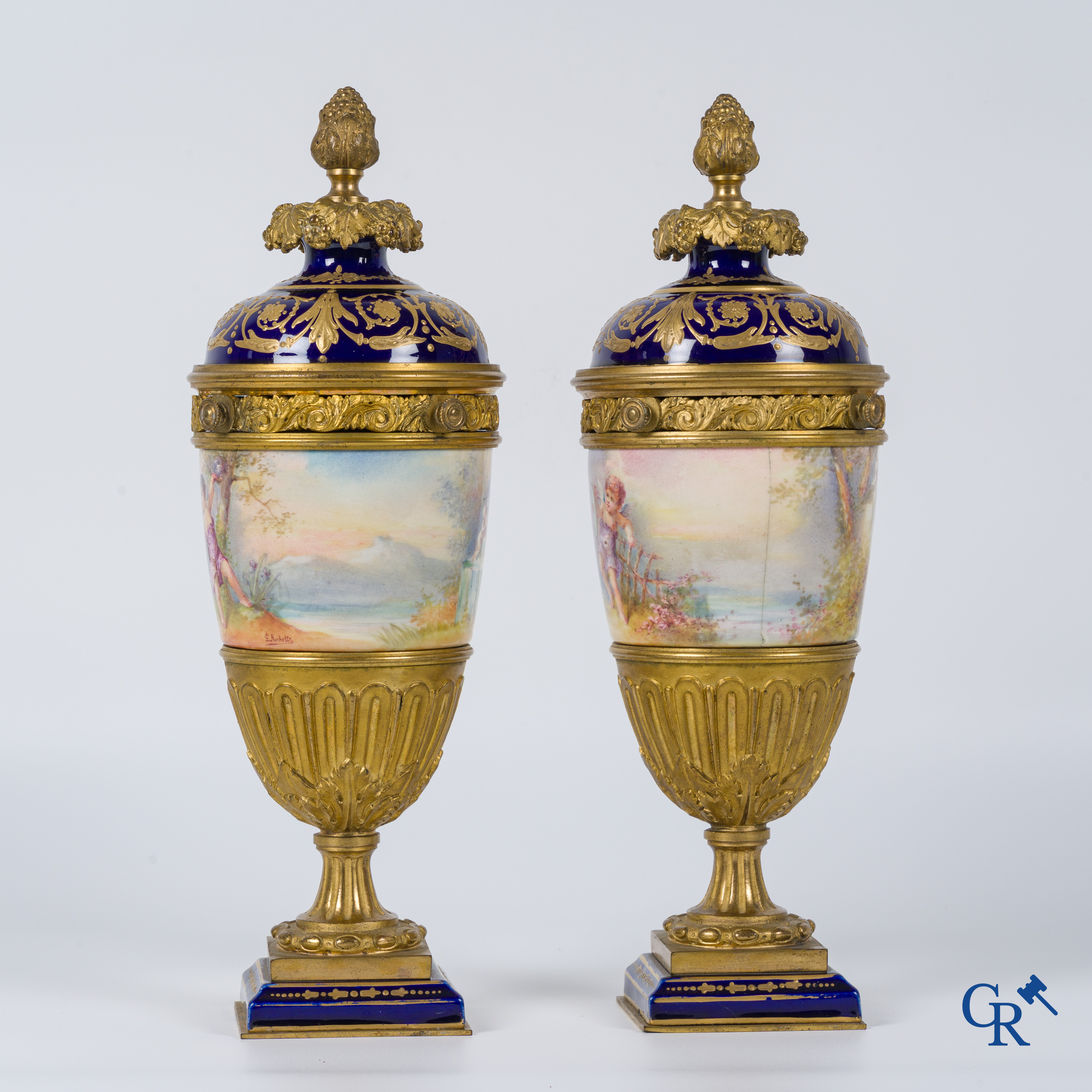 Porcelaine: Sèvres: Paire de vases en porcelaine de Sèvres montés en bronze. Napoleon III.