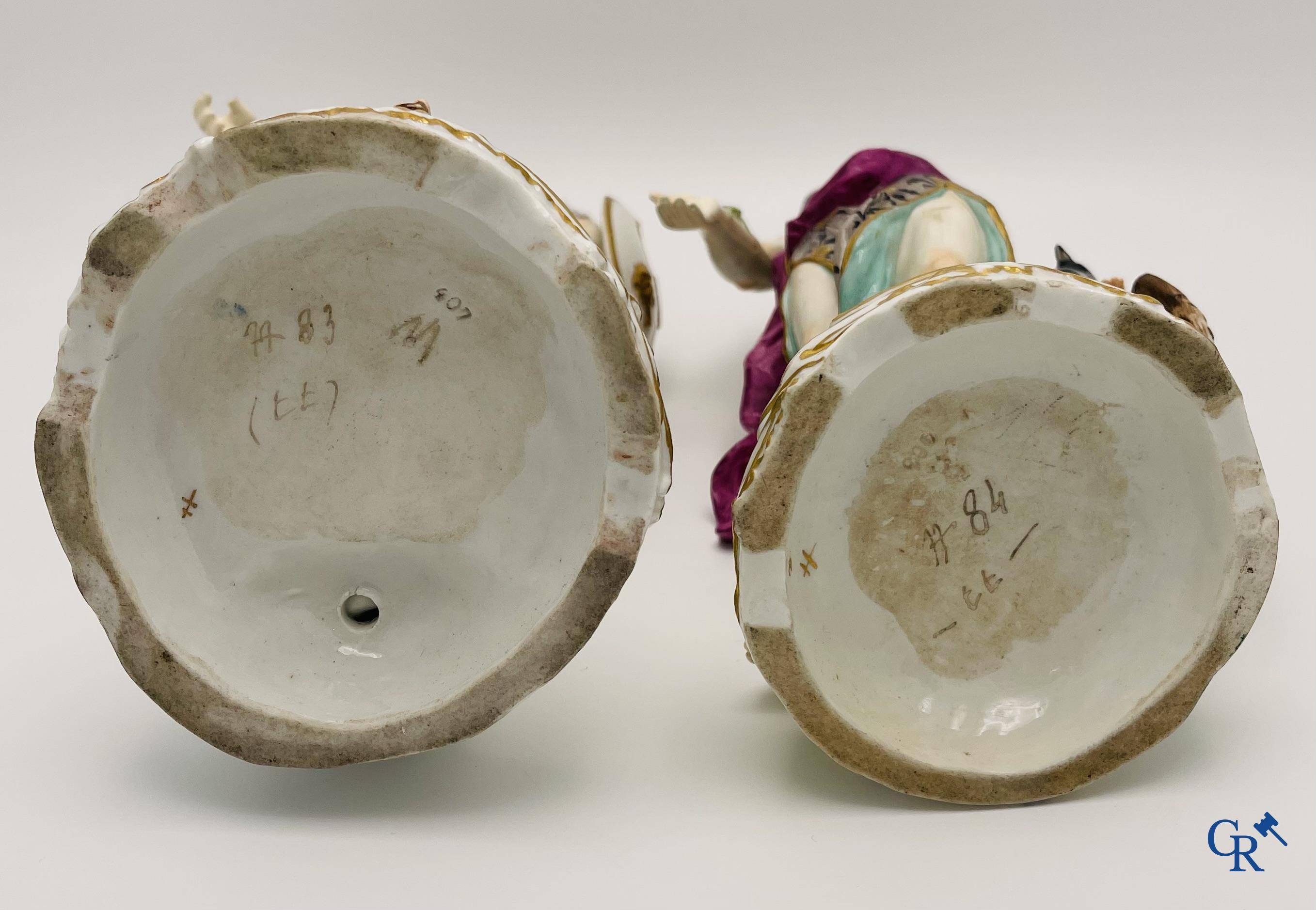 Une paire de figurines en porcelaine polychrome dans le gout de Meissen.