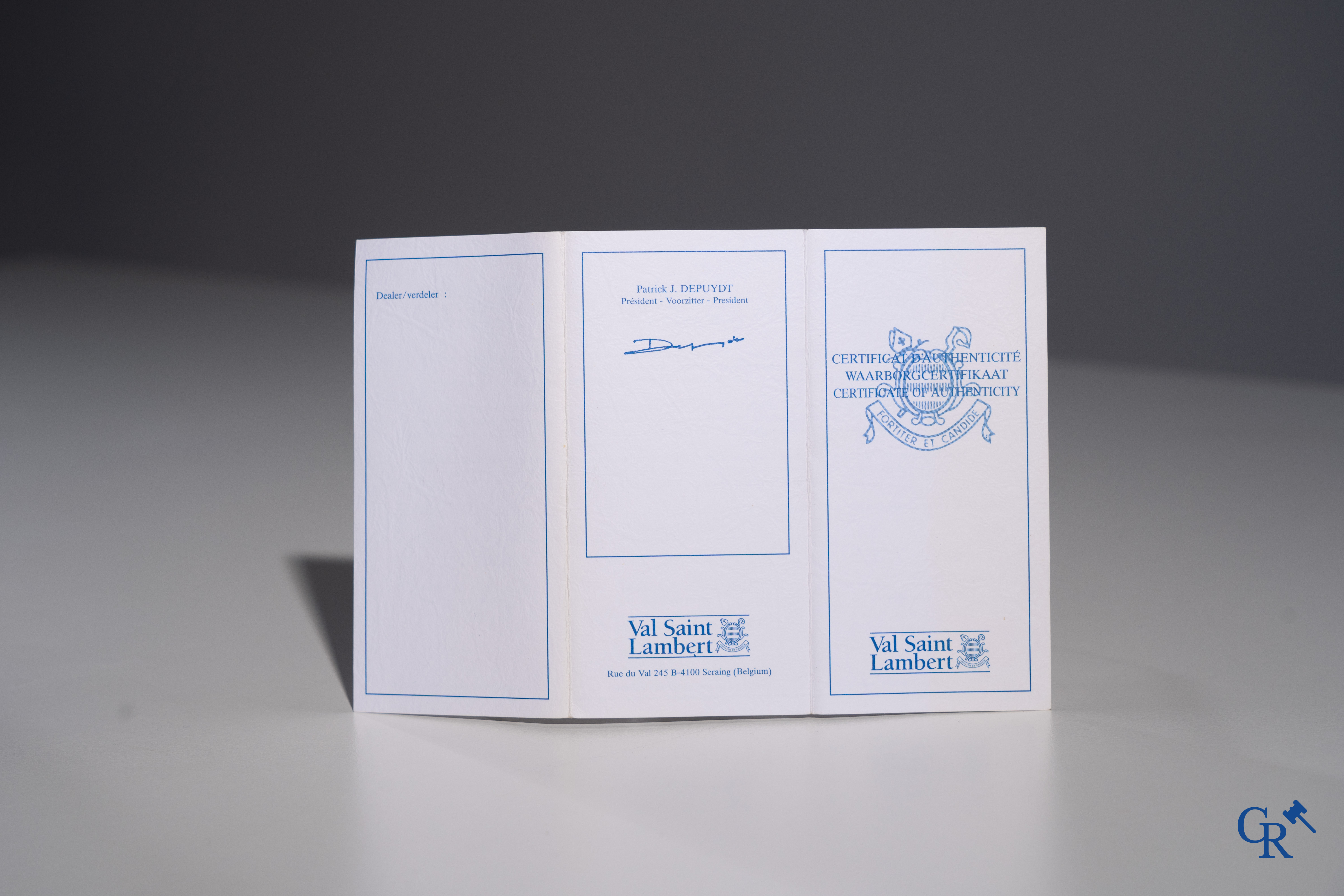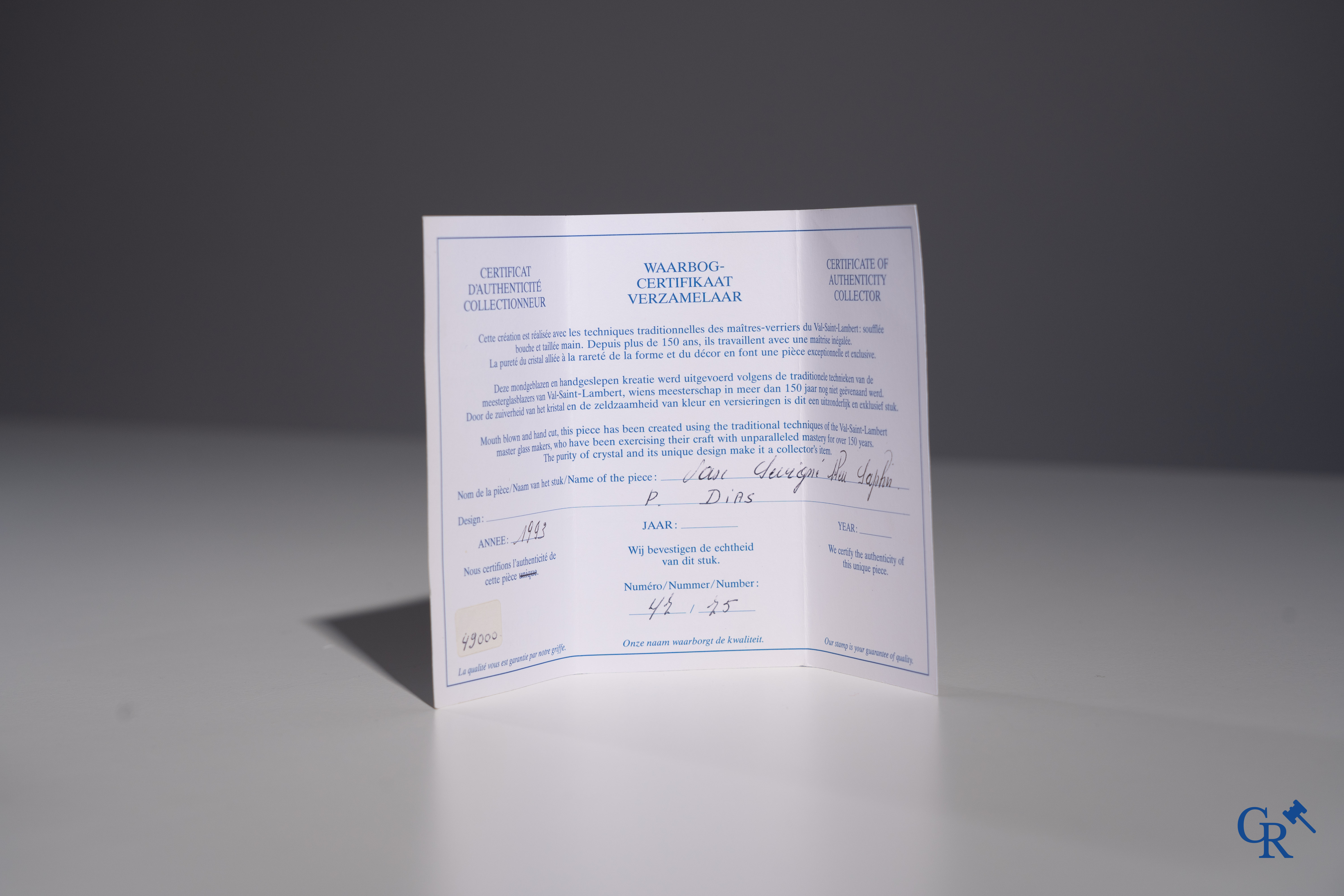 | Val Saint Lambert, vase Sévigné bleu saphir, Designer Pierre Dias. Numérotée 47/75 et datée 1993. Signée P. Dias. |