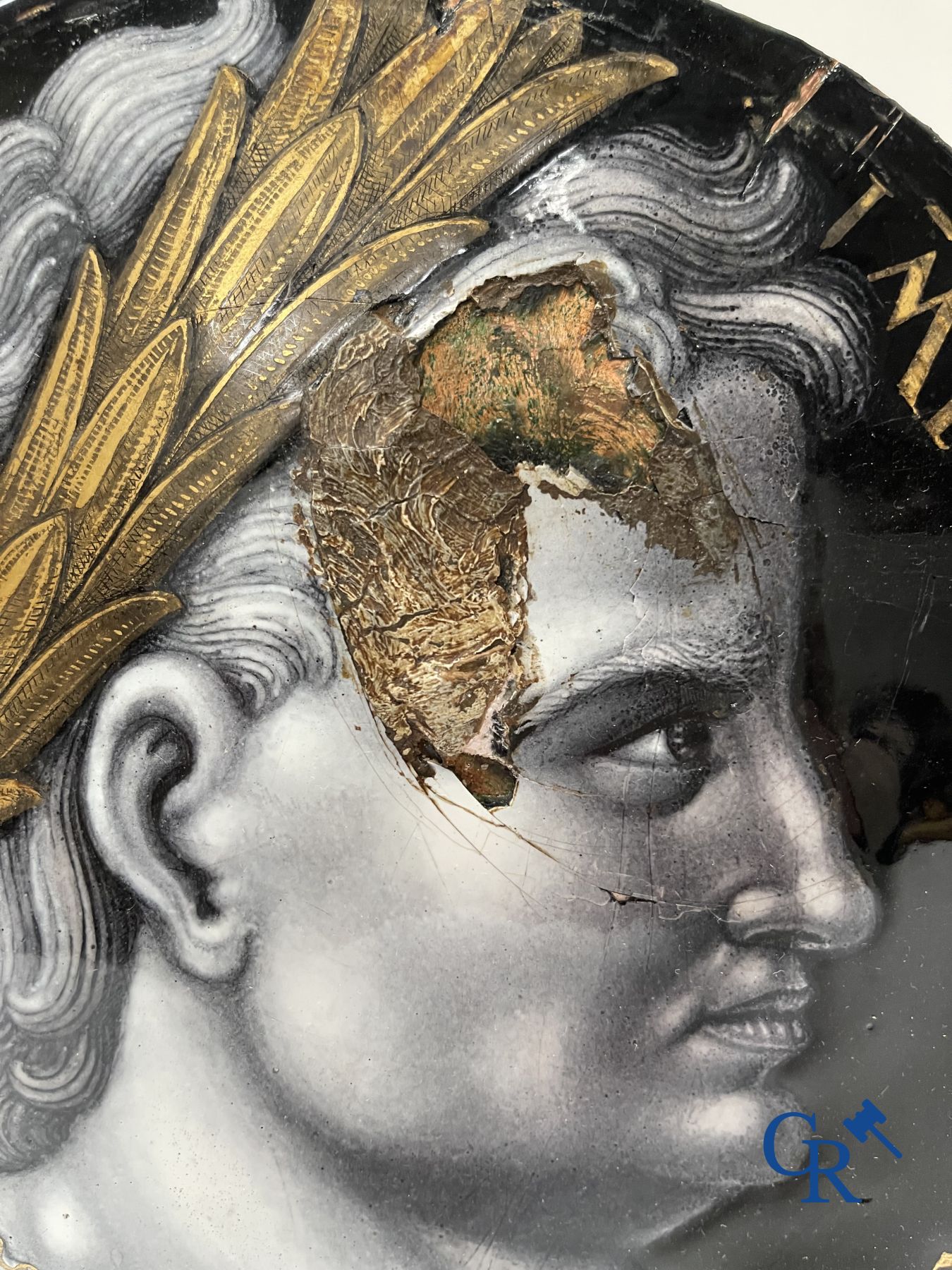 | Limoges: Dans le goût de Jacques Laudin I. 2 médaillons au profil de l'empereur Néron et de Jules César. Émail sur cuivre. XVIIe siècle. |