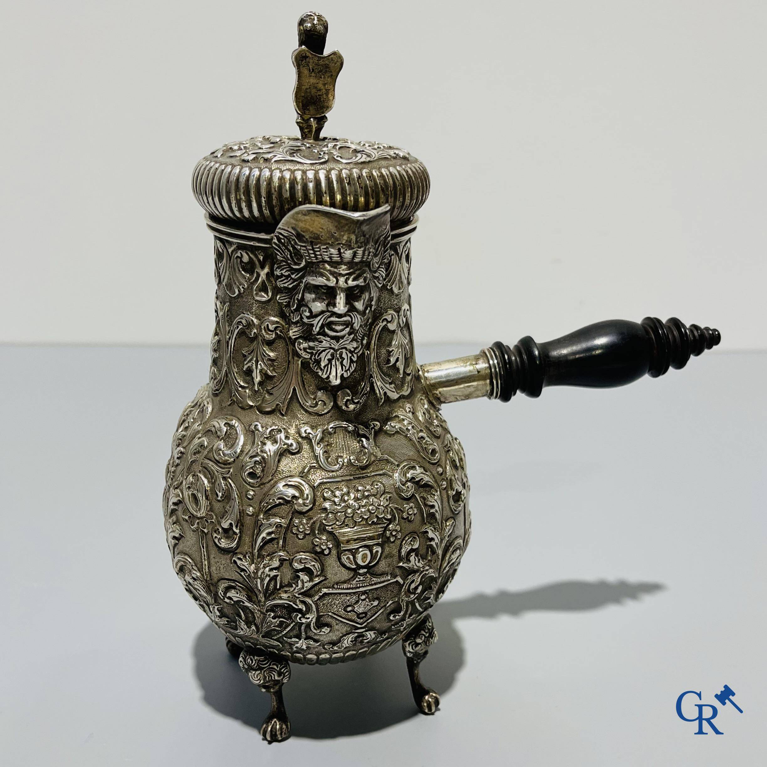 Vincennes 18ème siècle. Un pot à lait à trois pieds en porcelaine douce sur fond bleu lapis.