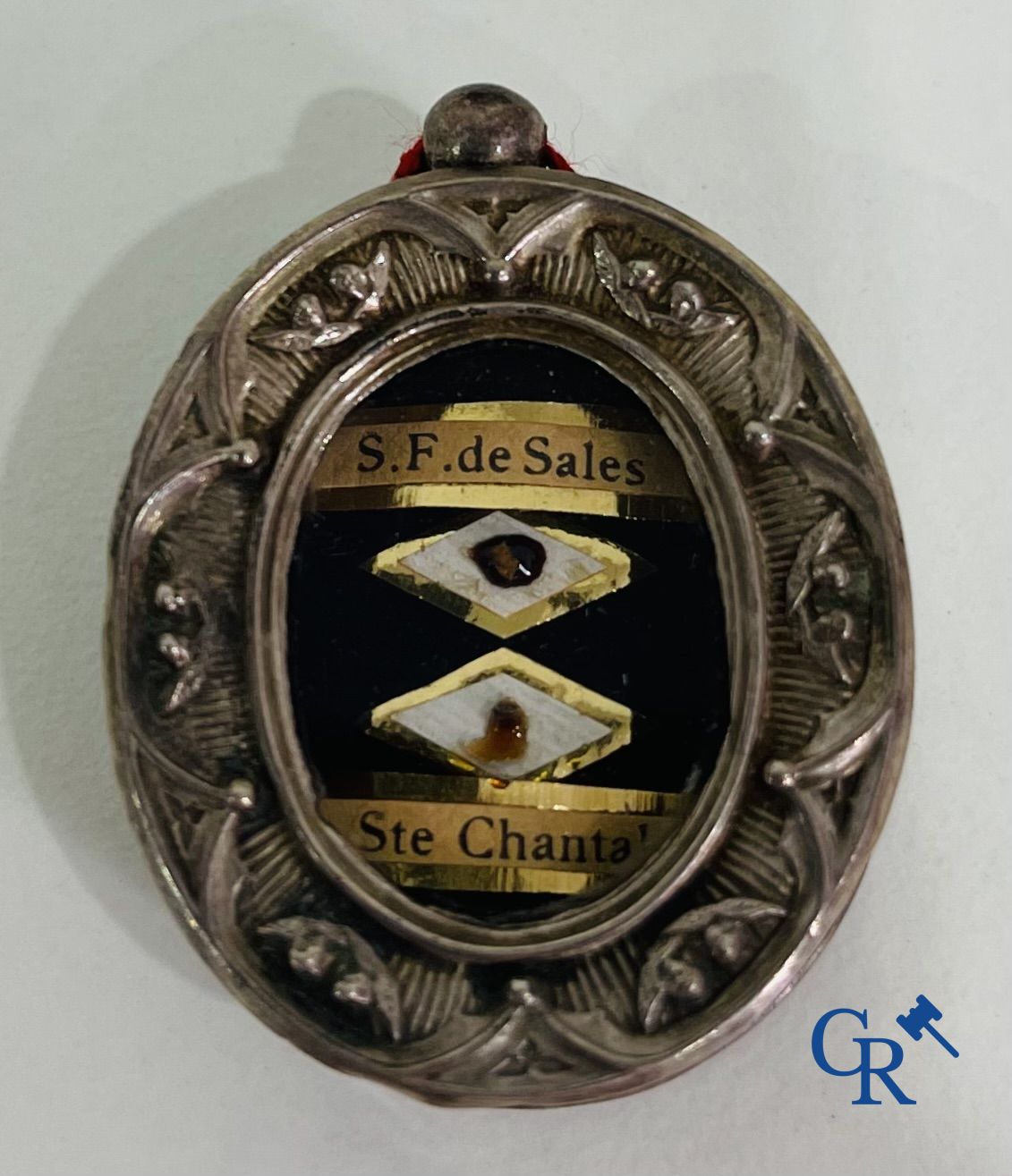 | Grand nombre d'objets religieux, tableau-reliquaire, Agnus-Dei Andreas Avelinus, diverses thèques, reliques, etc. XVIIIe-XIXe siècle. |