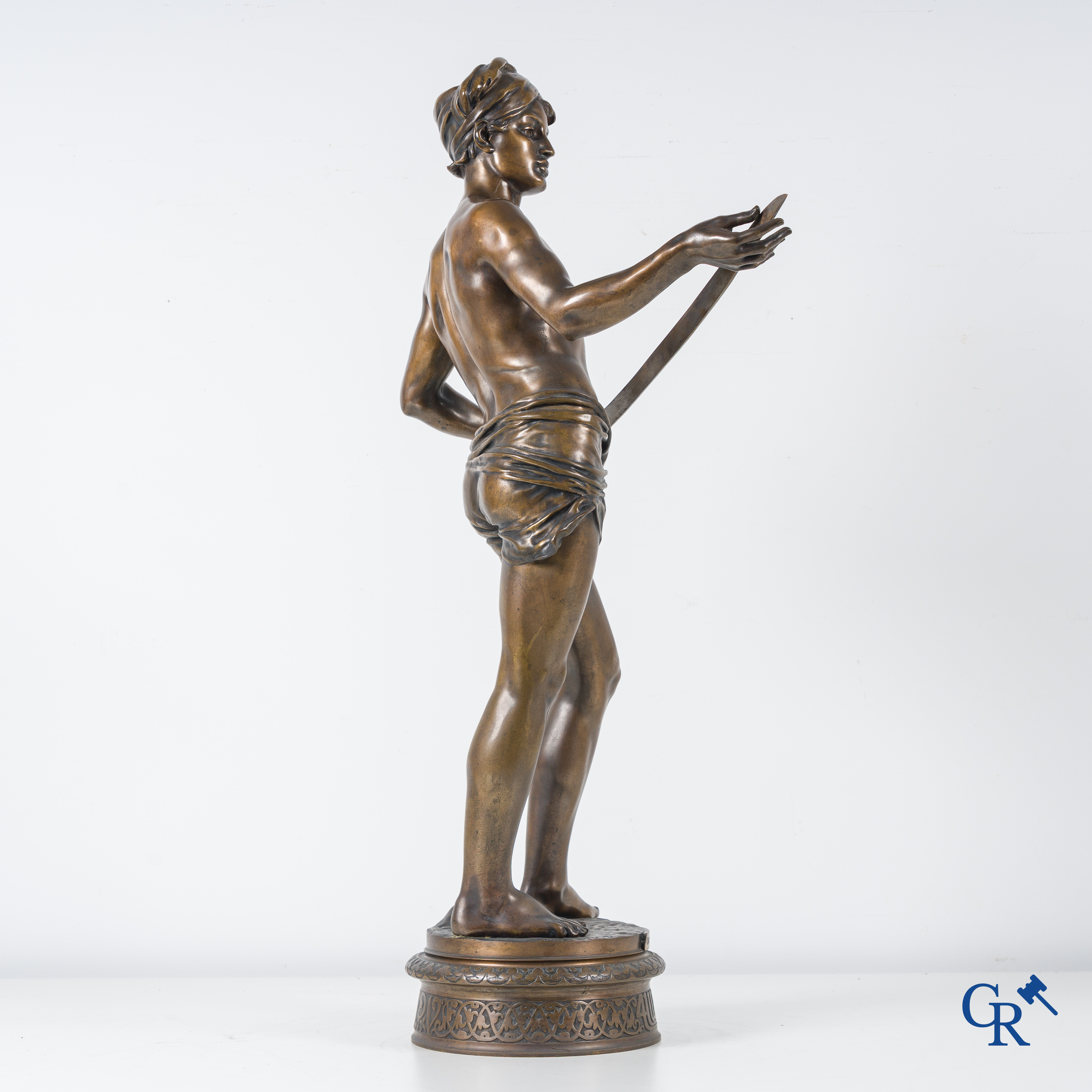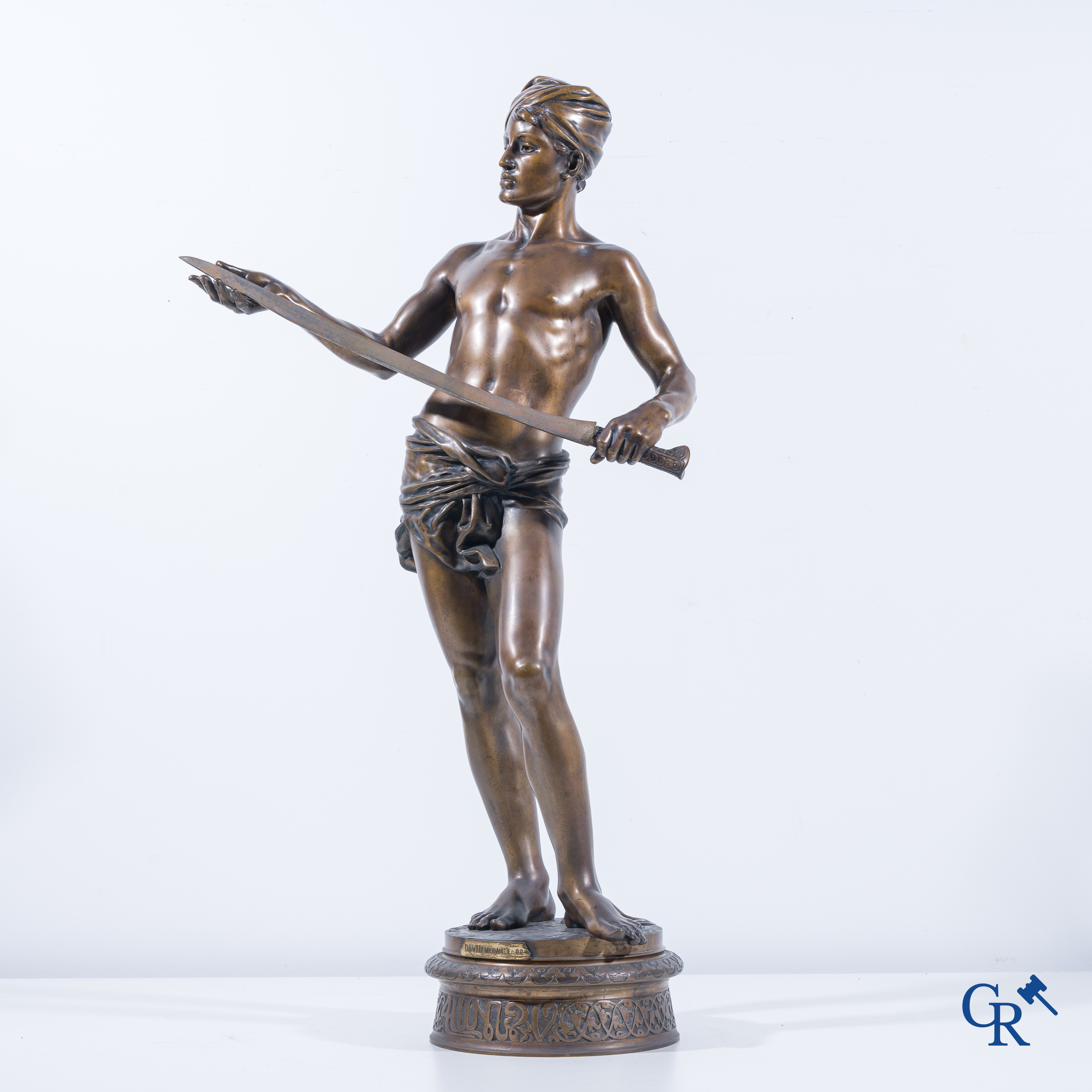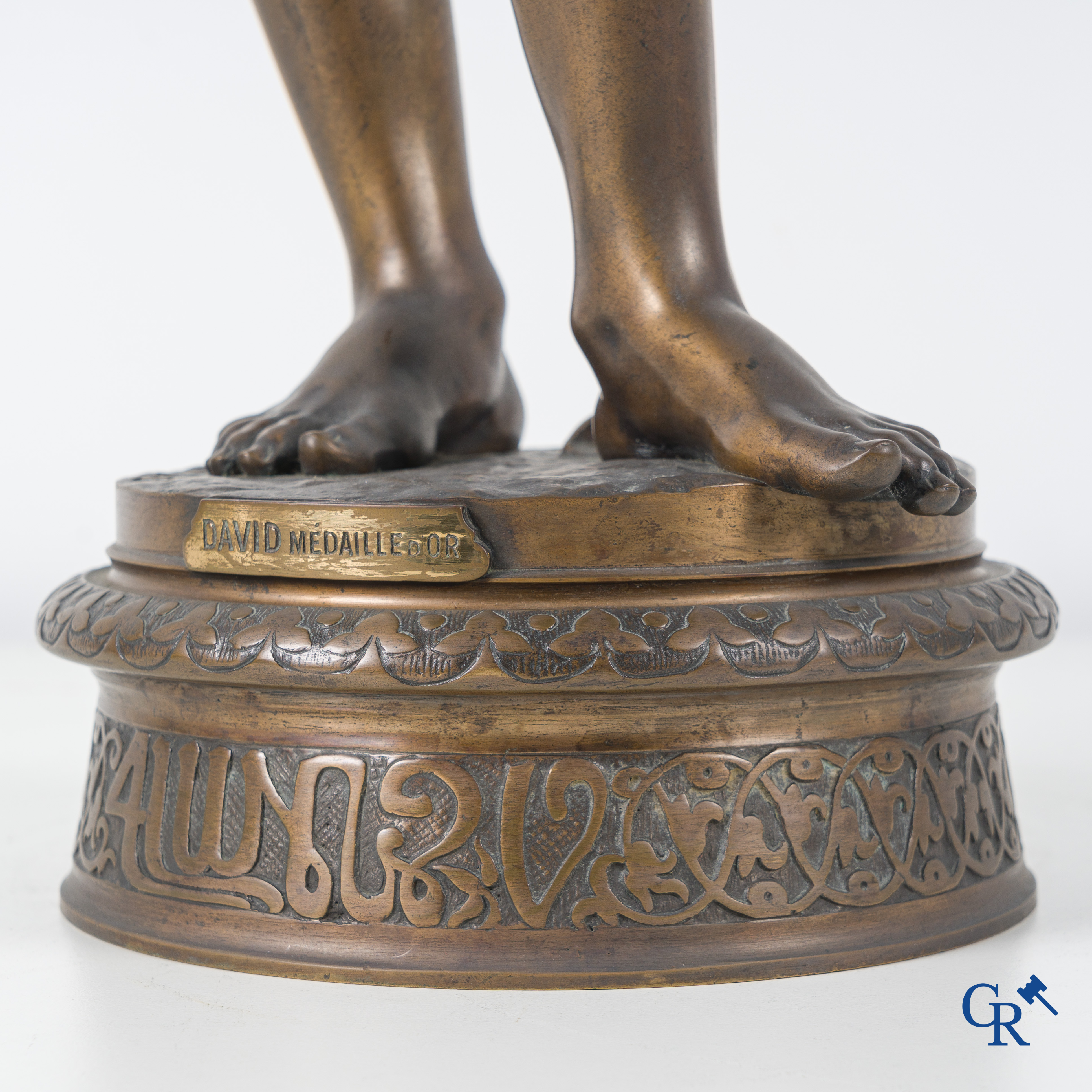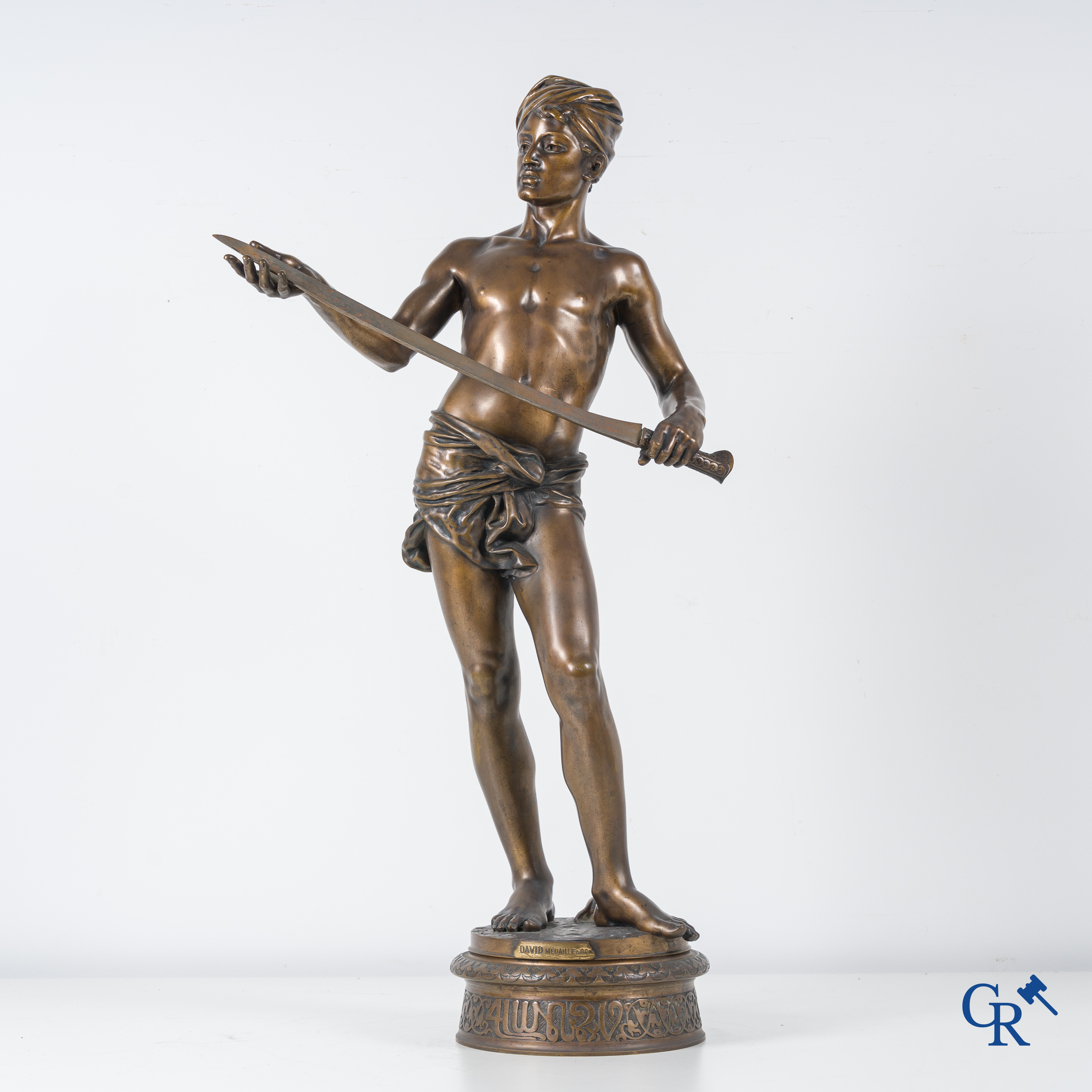 | Jean Jules Cambos (1828-1917) "David", Medaille d'or. Bronzen beeld. 19de eeuw. |