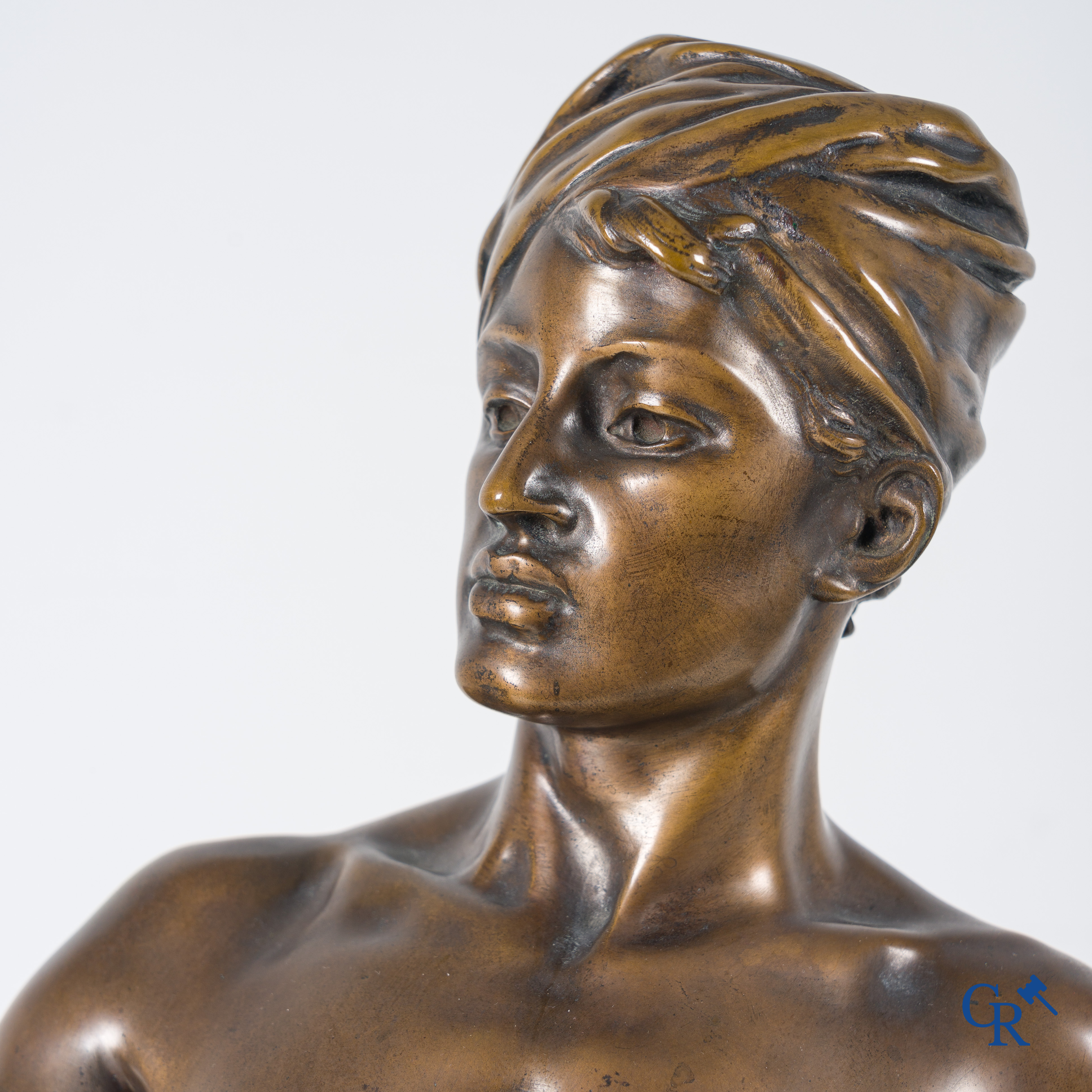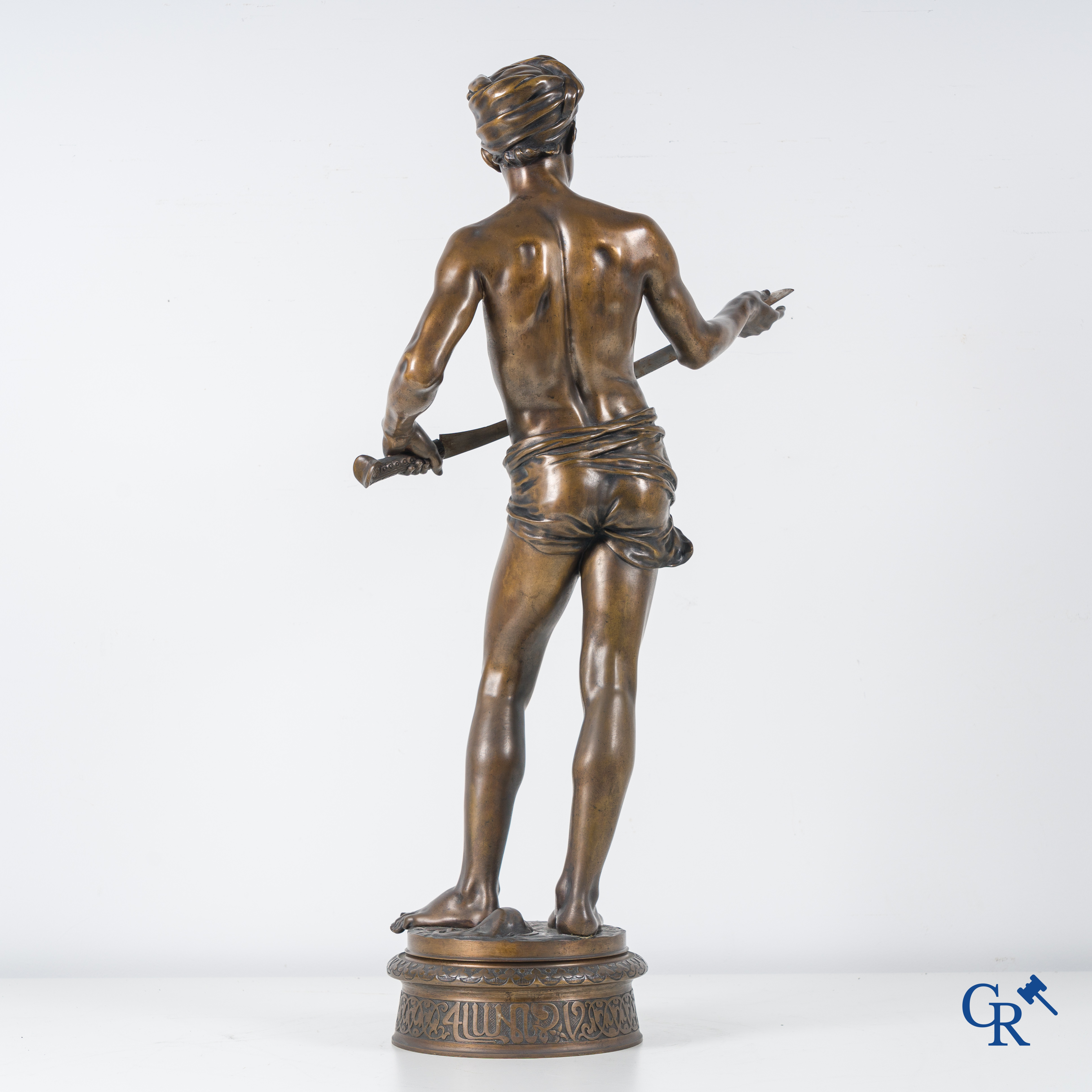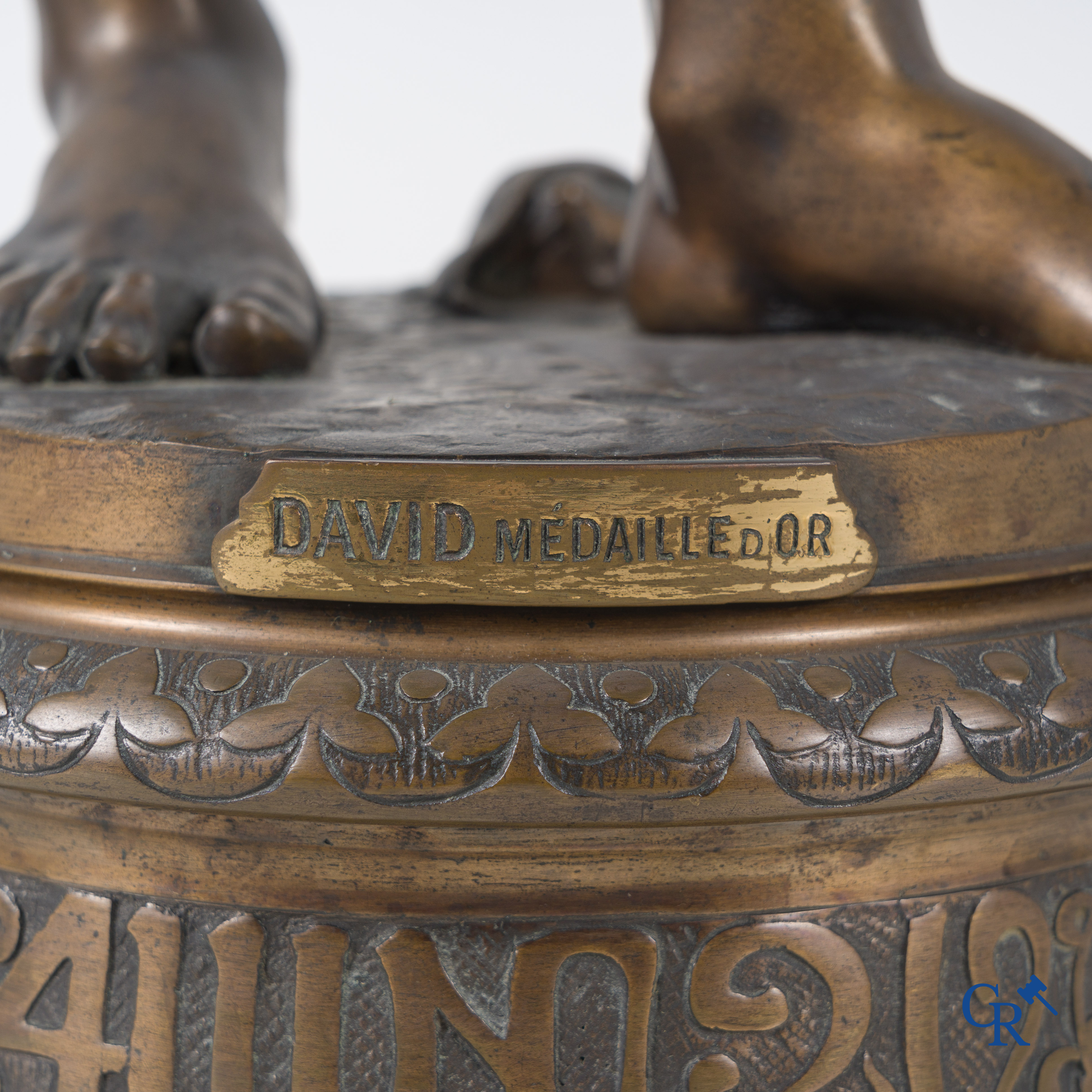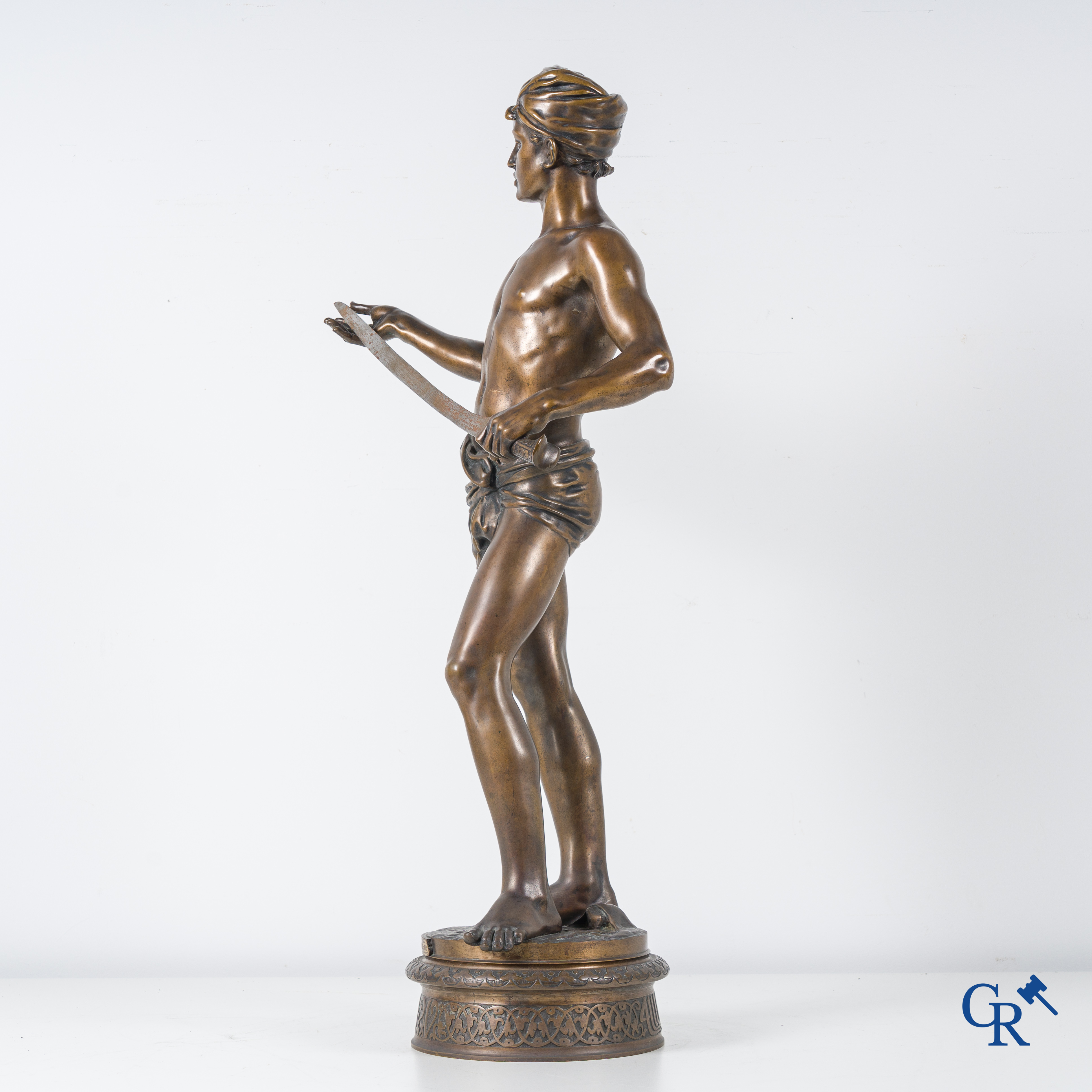 | Jean Jules Cambos (1828-1917) "David", Medaille d'or. Bronzen beeld. 19de eeuw. |