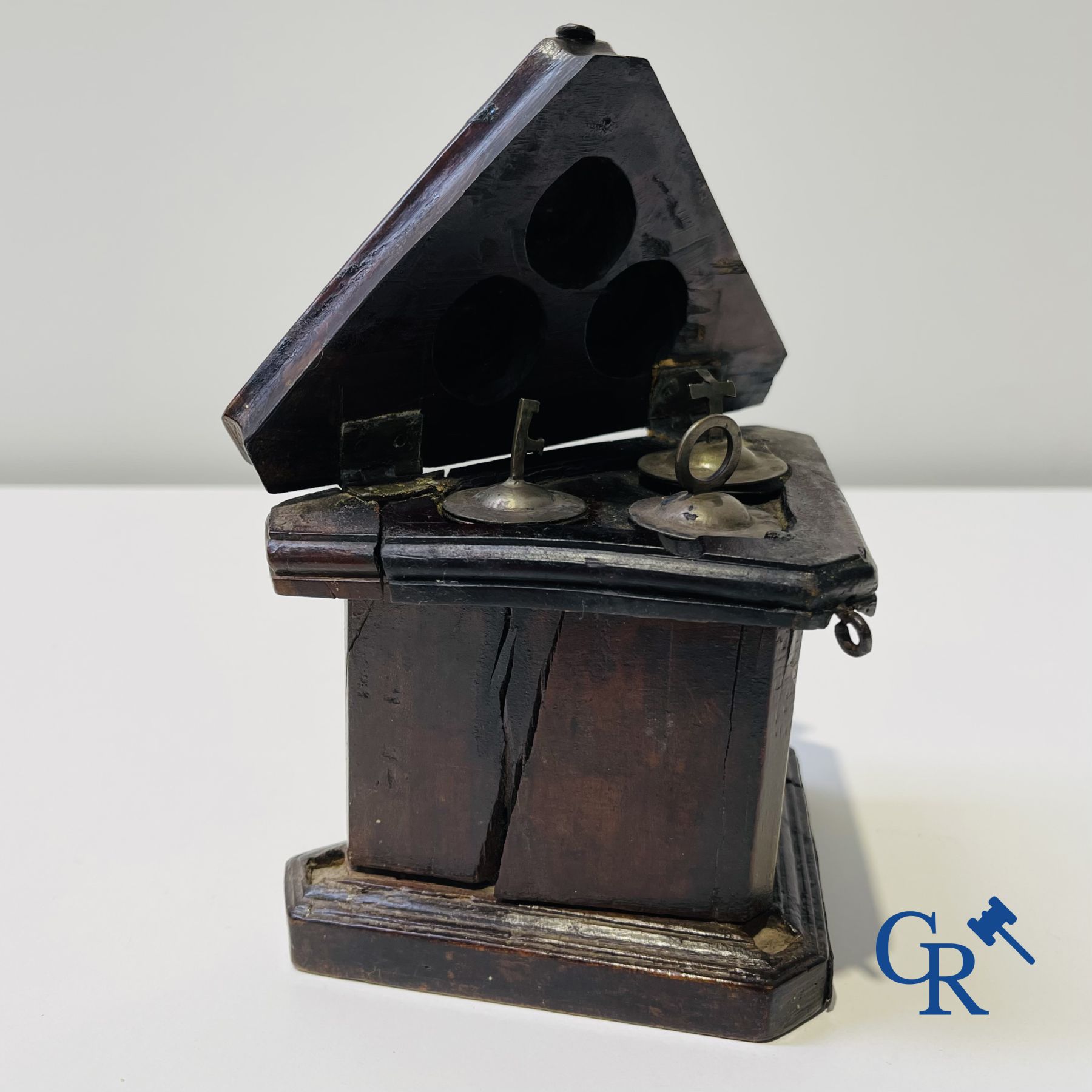 | Religieuze objecten: Koffertje met de heilige oliën. 3 flesjes. 17e-18de eeuw. |